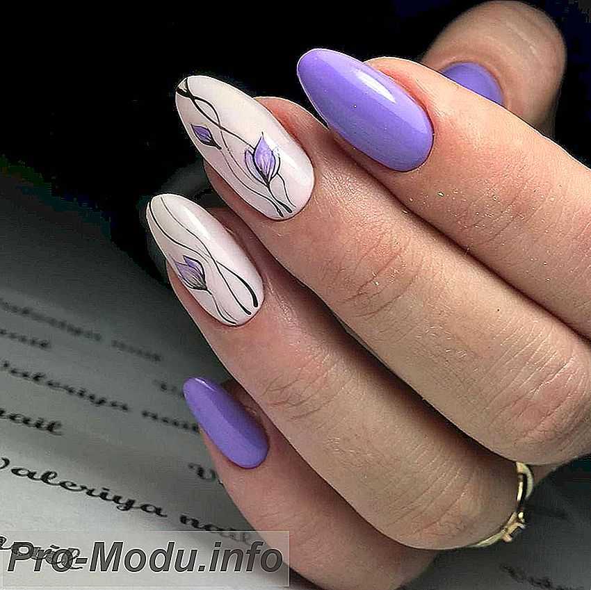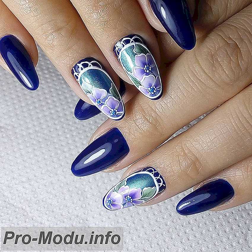 Для ногтей большой длины подходит равномерный тон, который может быть бледно-голубым либо ярким, интенсивным, вызывающим внимание. Сейчас в тренде миндалевидные ногти. А их дизайн ограничен только фантазией обладательницы ногтей и профессионализмом маникюрщика