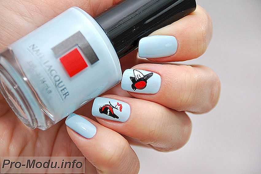 Нежный голубой тон маникюра подойдёт и на короткие ногти, поскольку применение светлых оттенков приводит к визуальному удлинению пальцев. Самые простые варианты ногтевого дизайна с этим цветом могут применяться и в домашнем дизайне с недорогими инструментами.