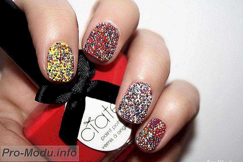 Икорный маникюр можно выполнить на всех пальцах сходу либо акцентировать микробисером отдельные ноготки. В особенности красиво гранулки смотрятся по «соседству» с матовым покрытием.
