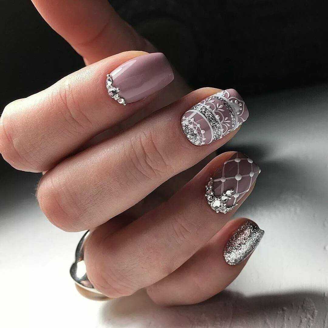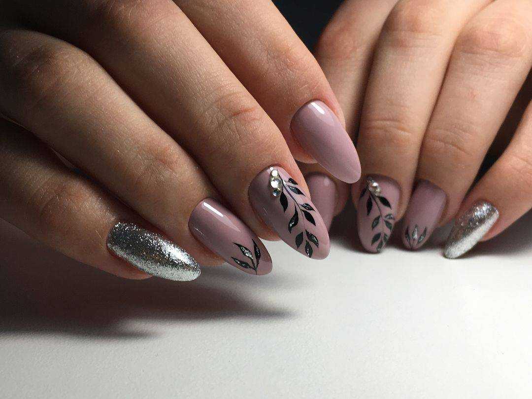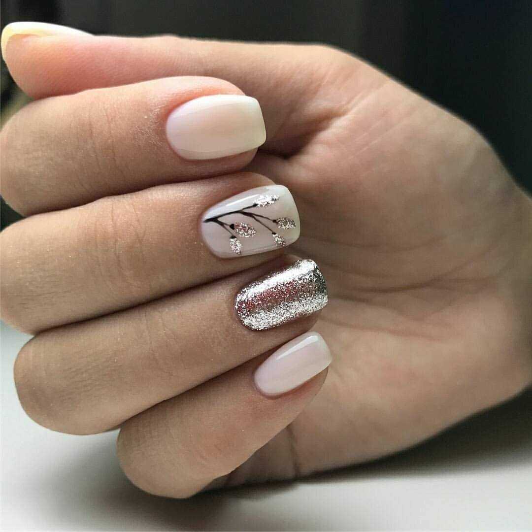 Оптимальная возможность добавить оригинальности в маникюр — выполнить на одной руке однотонное нежное розовое покрытие, а на другой дизайн. Красивый дополнительный бежевый оттенок, а также легкие узоры и аккуратный декор с серебром/позолотой, которые встречаются часто в идеях маникюра для офиса, делают дизайн элегантным и утонченным.