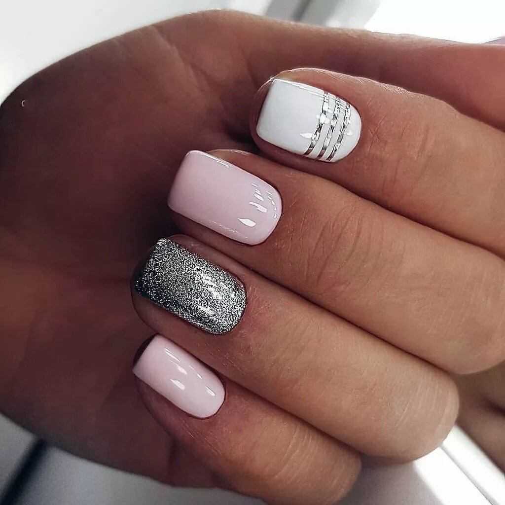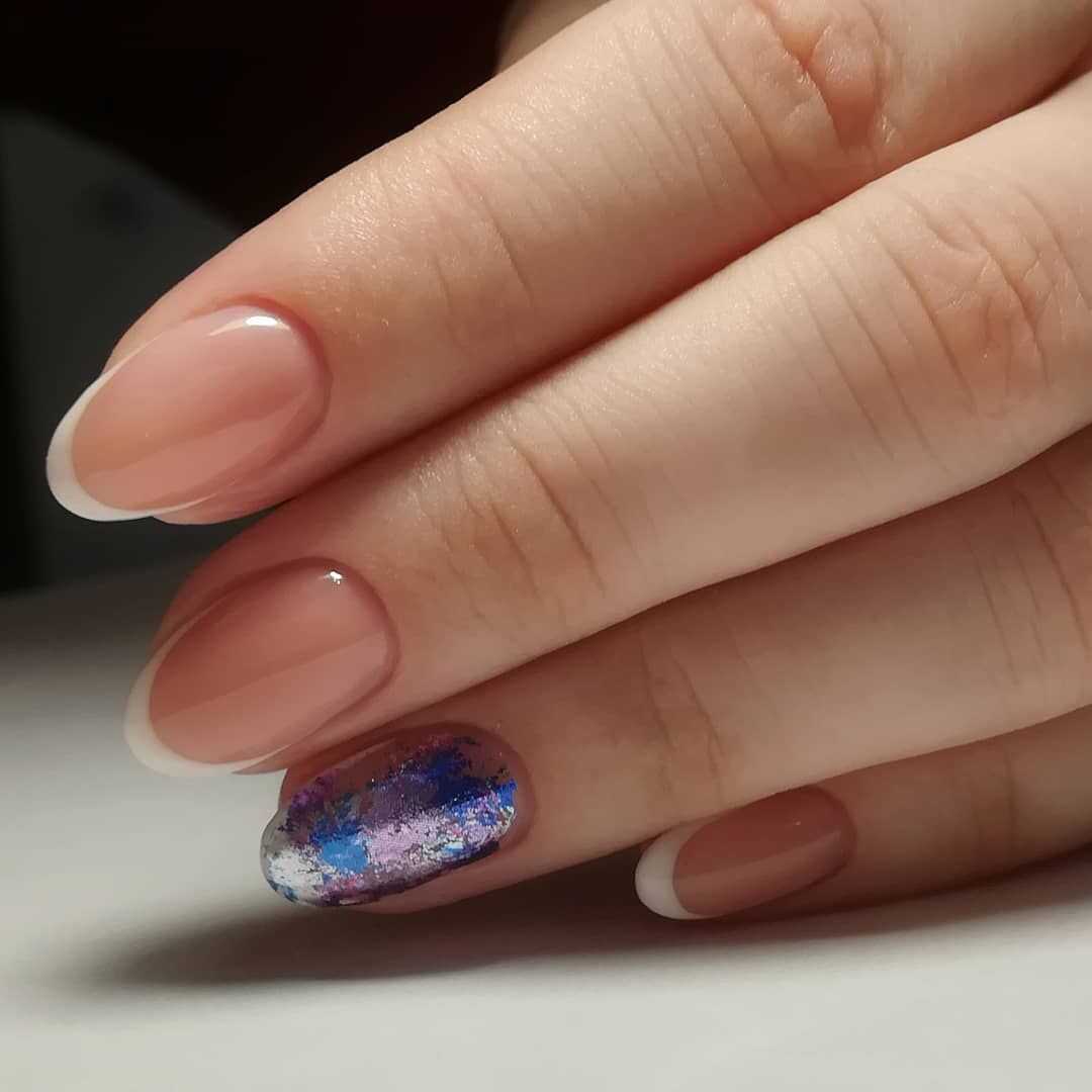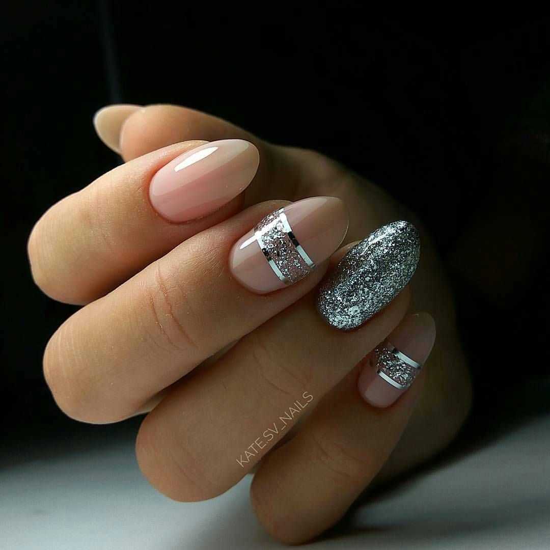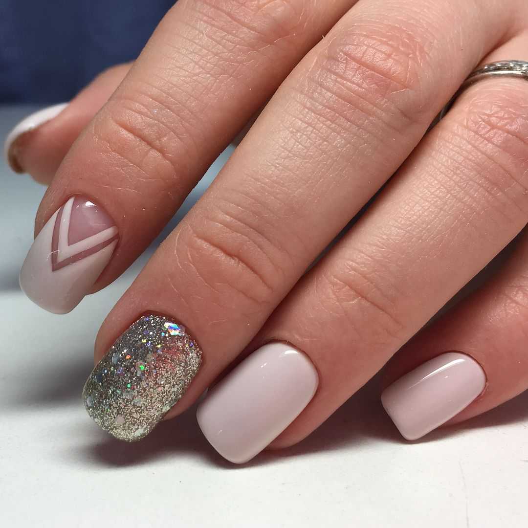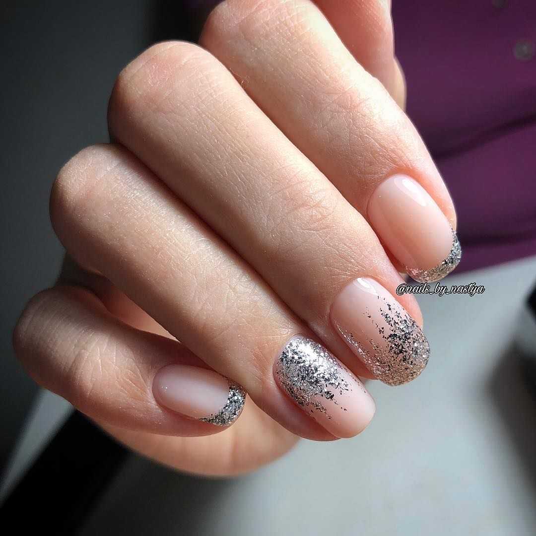 Что касается техник маникюра в этих оттенках, то стоит отдать предпочтение классике: френчу, лунному дизайну, градиенту, однотонному маникюру. Такой дизайн будет смотреться естественно и очень нежно. Дополняйте нежные оттенки серебряным или золотым глиттером, втиркой, пайетками разной формы и размера.
