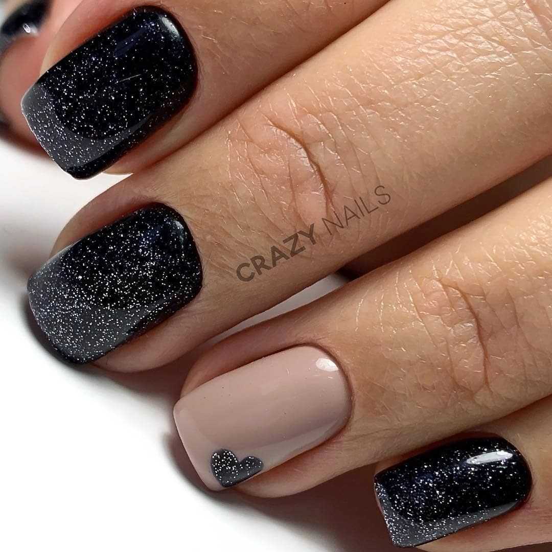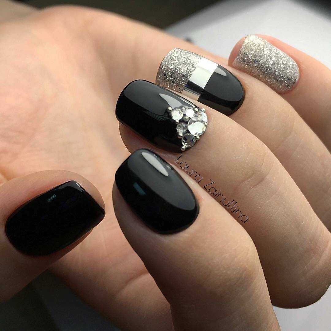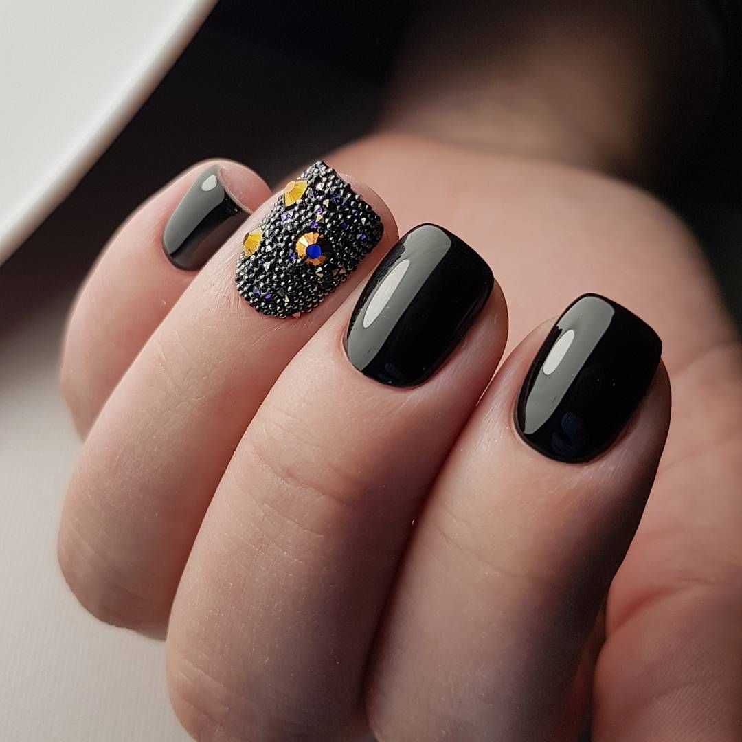 #2 Черный маникюр с блестками на короткие ногти