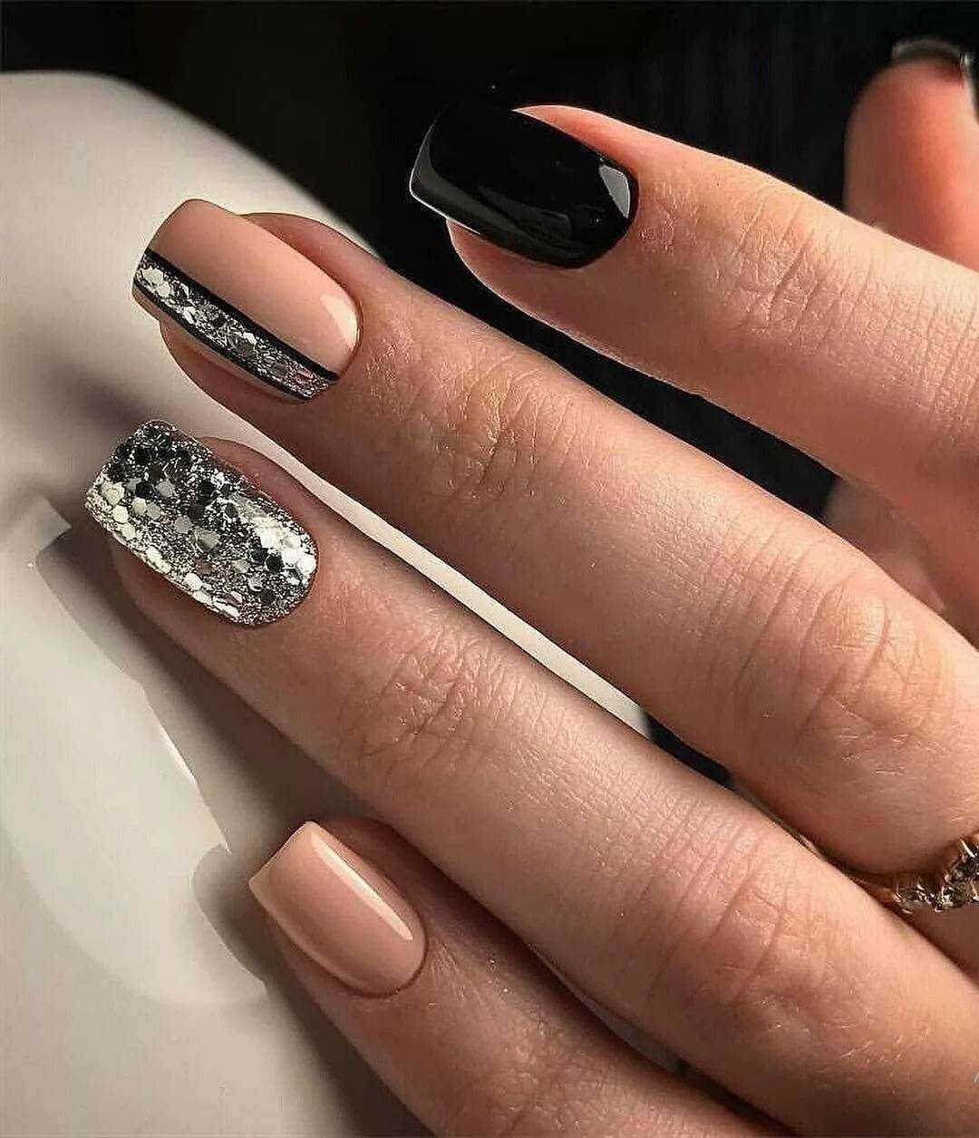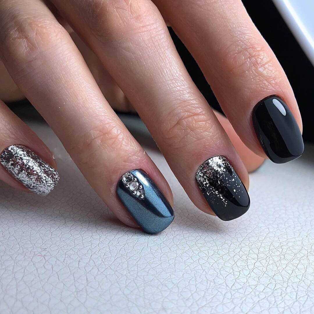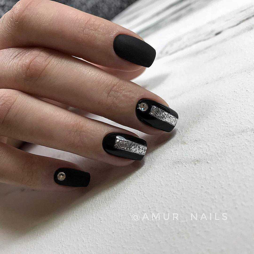 #2 Черный маникюр с блестками на короткие ногти