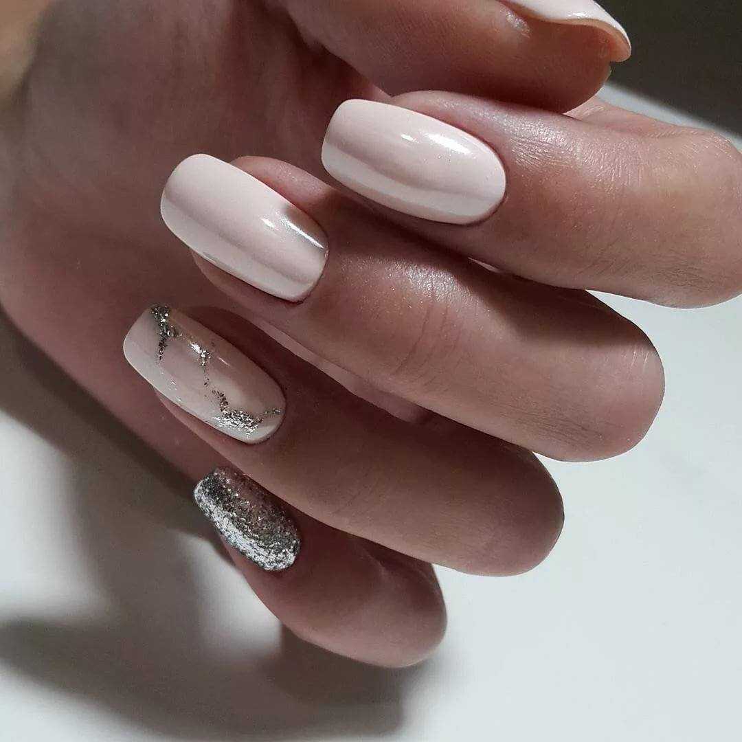 #1 Нежный однотонный маникюр с блестками