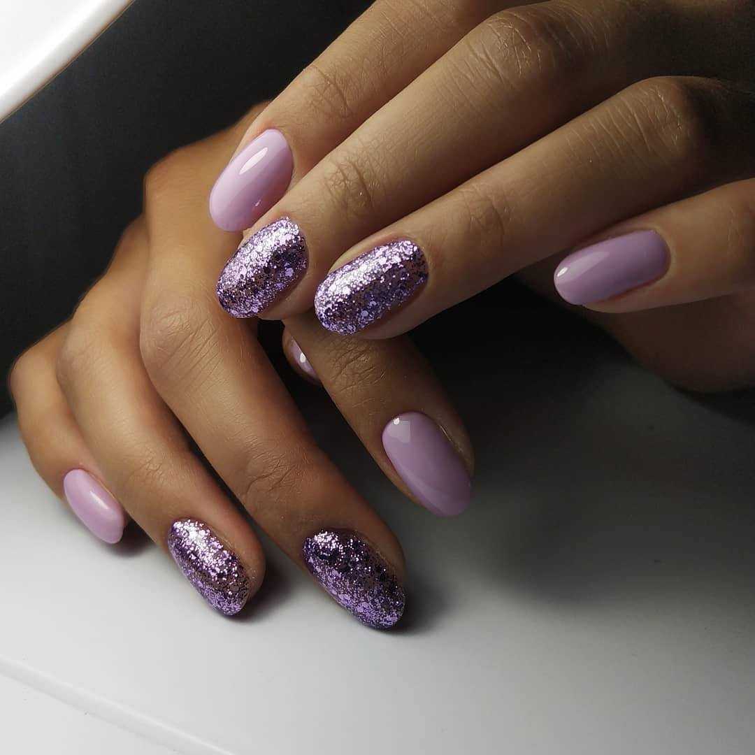 Применение глиттера поможет сделать женственный и легкий рисунок. Выглядит нежно, женственно, но при этом модно.