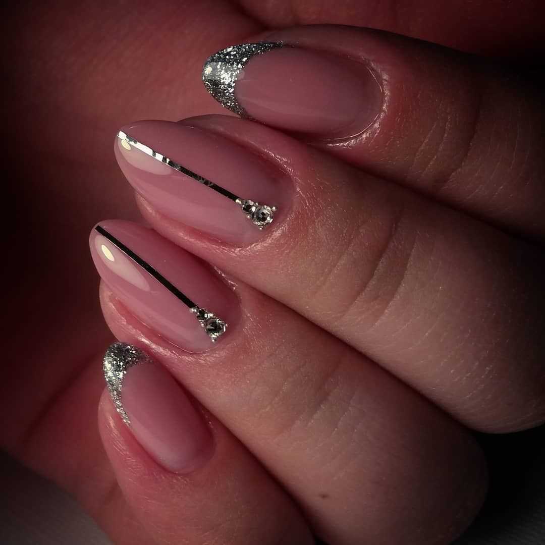 Маникюр с глиттером: растяжка блестками на ногтях
