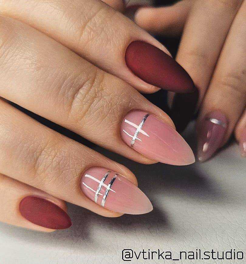 Если у вас не так много времени на создание необычного маникюра – окрасьте ноготки в несколько разных оттенков. При этом лучше сочетать матовые и глянцевые покрытия. В качестве легкого и ненавязчивого украшения можно выбрать полоски, фольгу, глиттер или втирку.