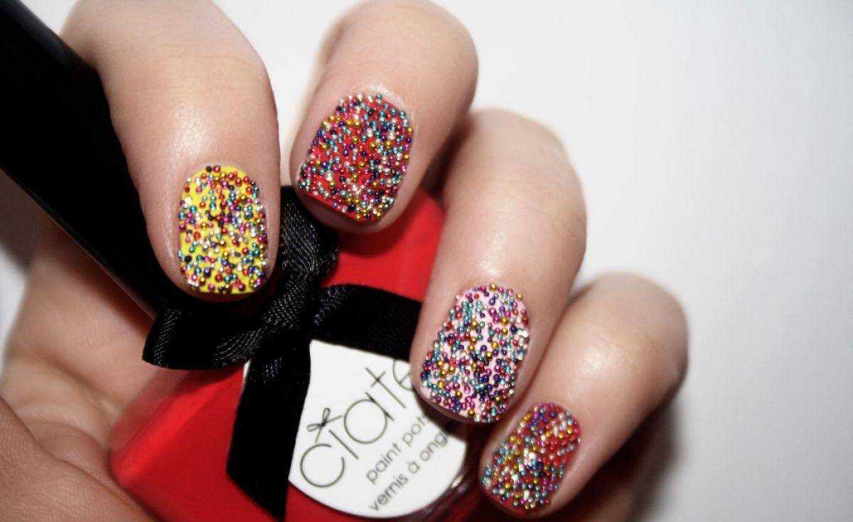 - Вы можете смешивать бусины разного цвета на некоторых или на всех ногтях. Такое икорное покрытие придаст вам хорошего настроения даже в скучные будни.
