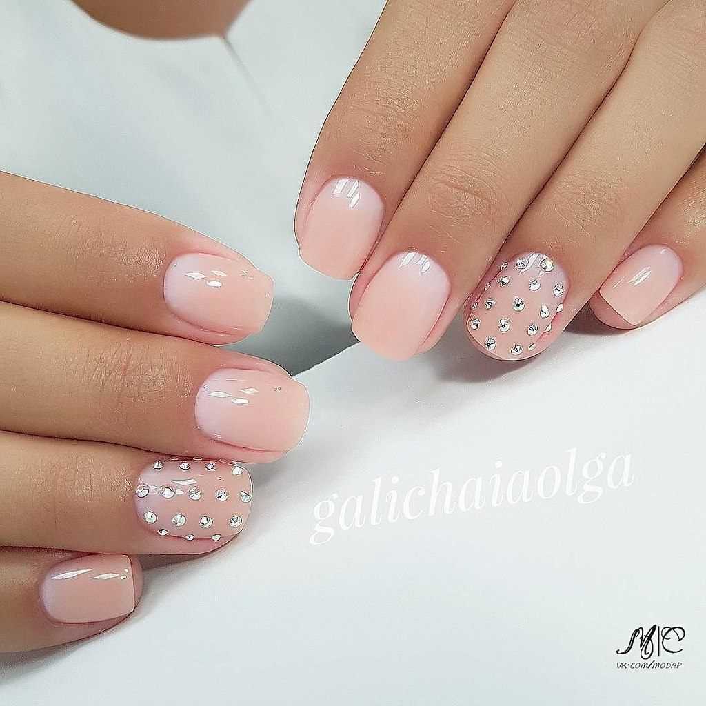 Здесь нужно быть особенно осторожным, чтобы не перегрузить не только дизайн, но и саму пластину. Велик риск нанести травму ногтю в том случае, если стразы зацепятся за ткань, колготки или волосы. Рекомендуем выбирать стразы небольшого размера и делать маникюр в стиле минимализм. Или выделить активным декором всего один пальчик, тщательно закрепите его, чтобы не остаться с некрасивыми «обломками» декора уже через пару дней.