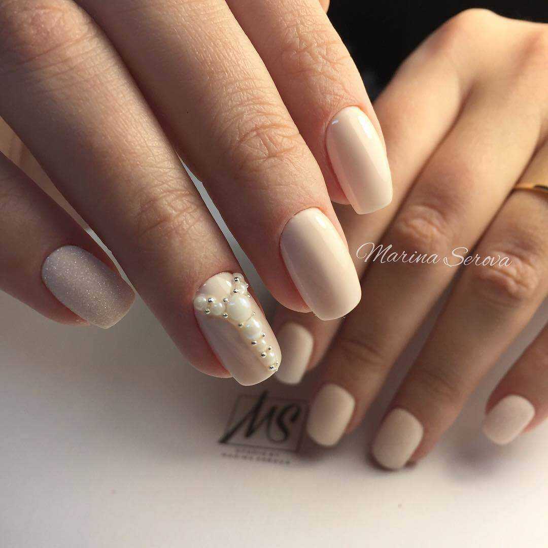 Даже обычный однотонный маникюр играет по-новому с бусинками в тон лаку