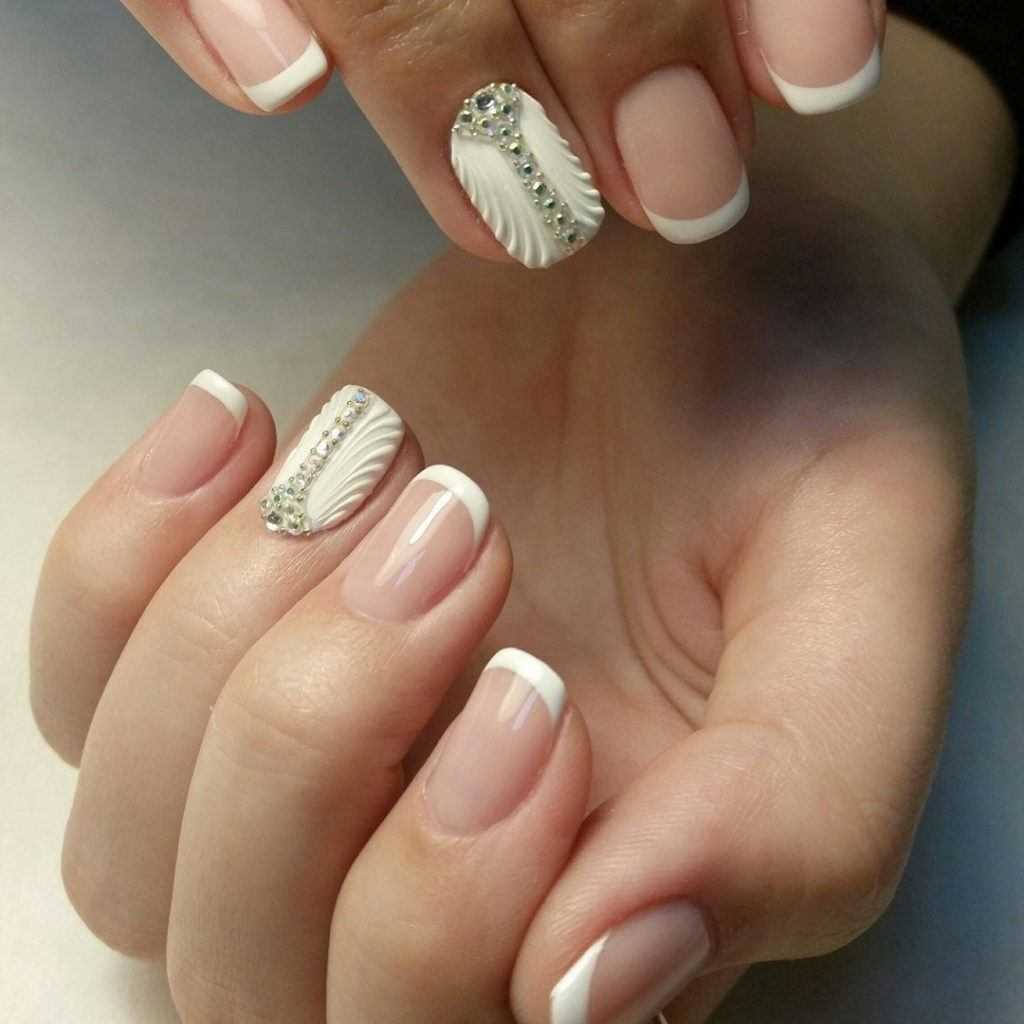 С белым френчем сочетаются все виды страз. На светлом белом фоне даже самые яркие стразы смотрятся восхитительно.