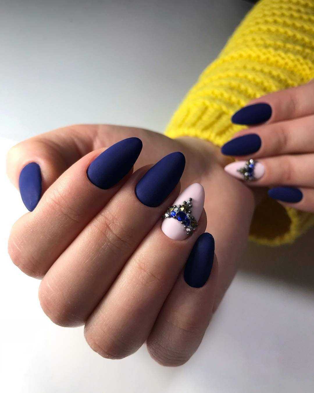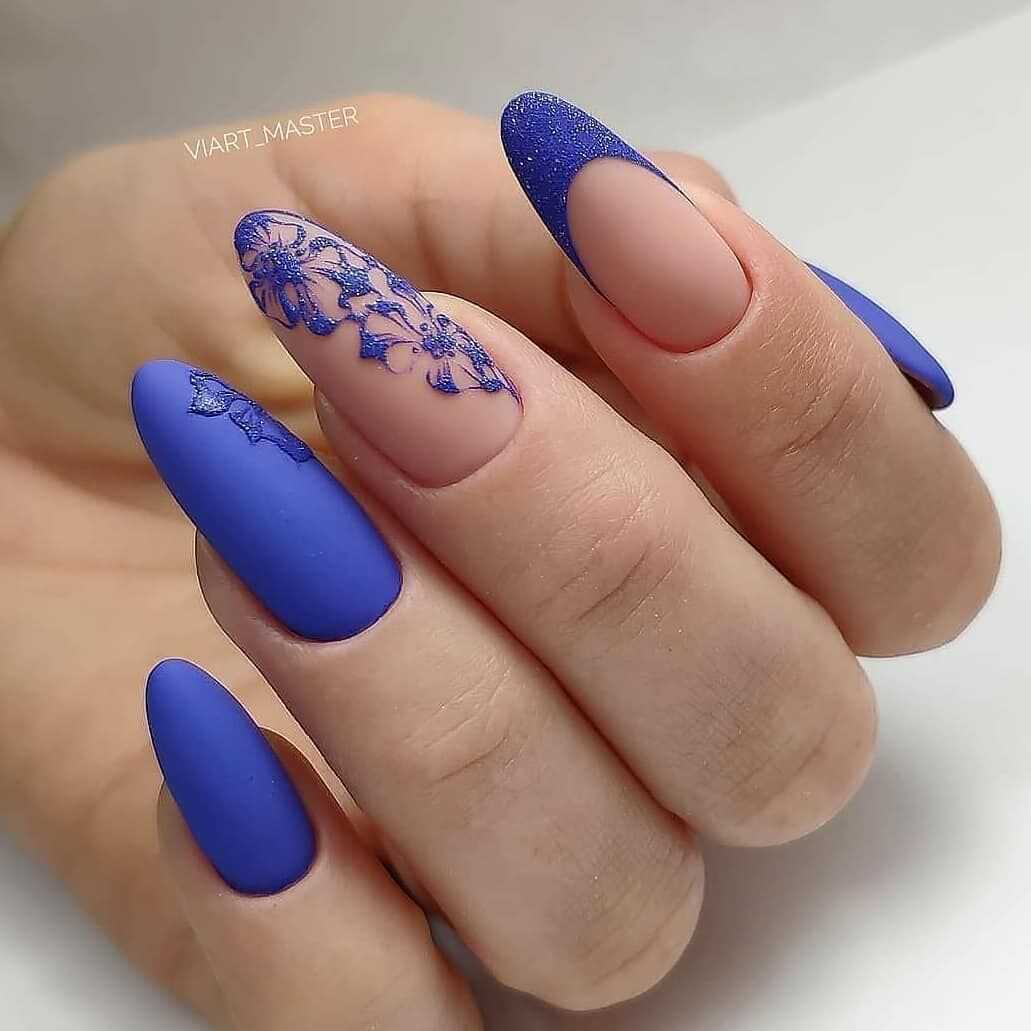 Матовый синий в маникюре