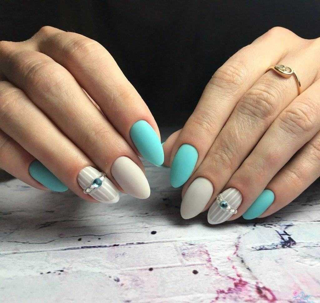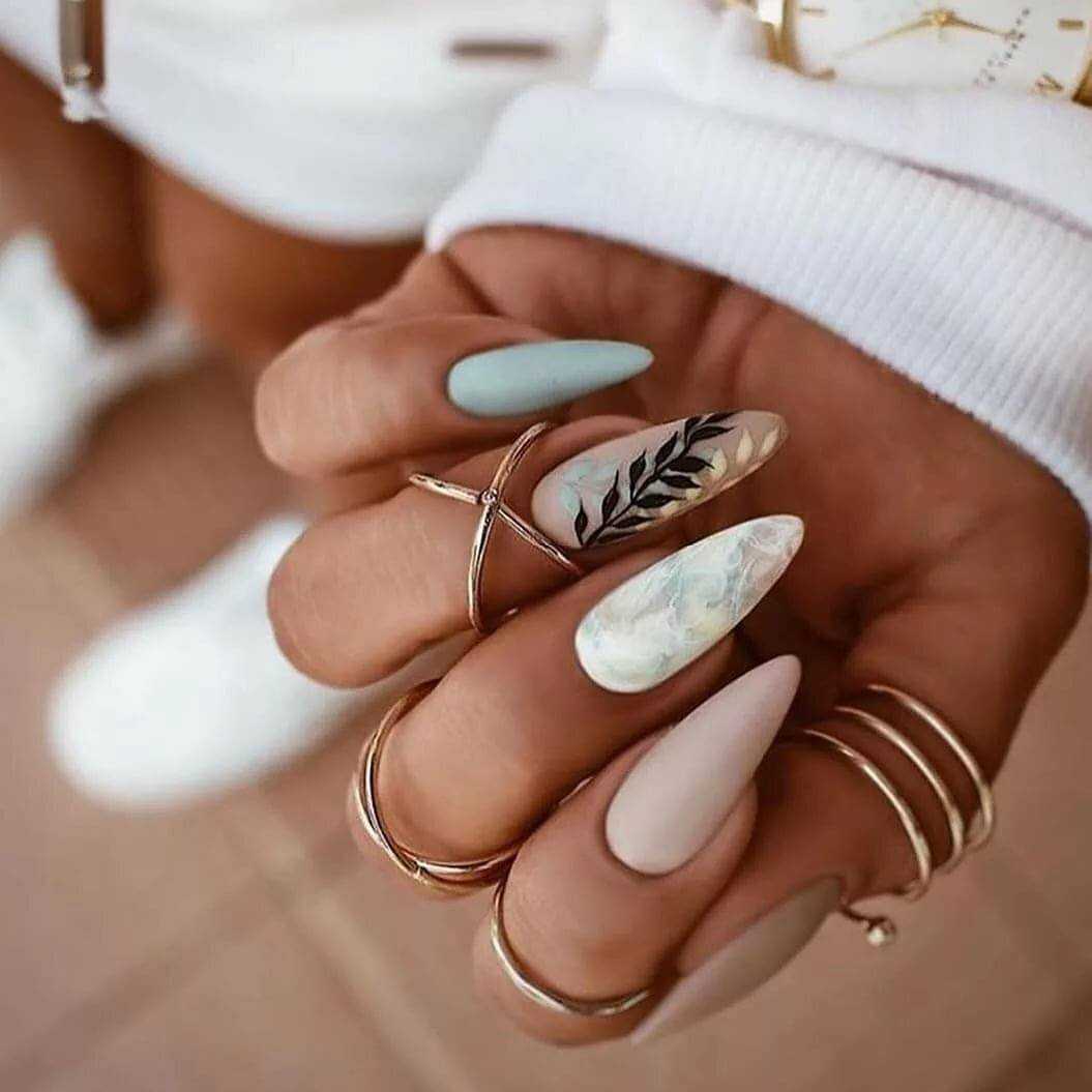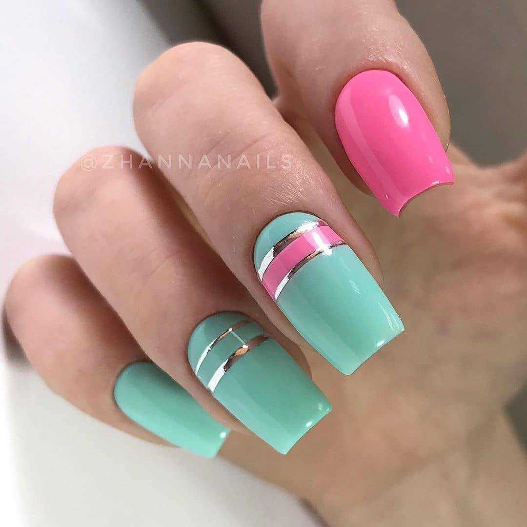 Фото маникюра с сочетанием мятного цвета с другими цветами