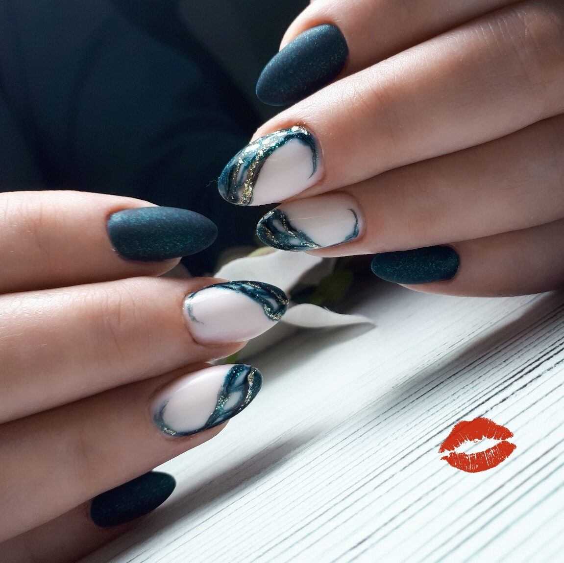 Их сочетают с основным оттенком на соседних ногтях, а ещё придают объём и натуралистичность за счёт имитации капелек гелем или топом.