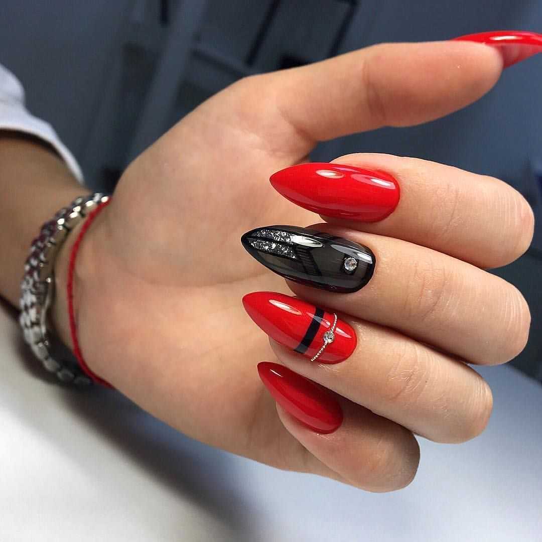 Красный нейл-арт со стразами