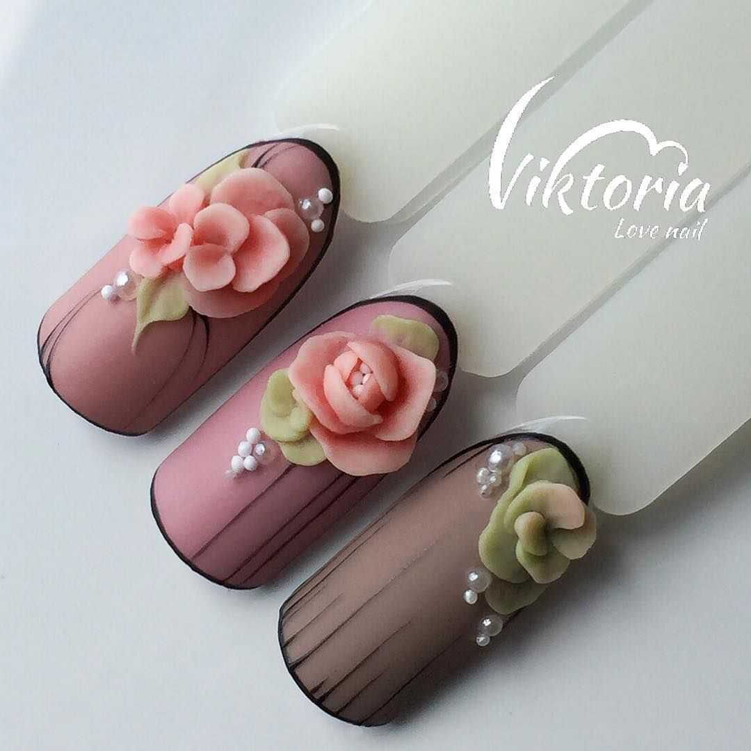 Особого внимания в дизайне с розами заслуживают нейл-арты с объемными и фактурными цветами. Розы достойны того, чтобы их тщательно прорисовывали, уделяя максимум внимания рельефности лепестков и переходам между ними. Профессиональные мастера используют для этого акриловый песок, густые гель-пасты различных оттенков. Так дизайн получается благороднее и насыщеннее.
