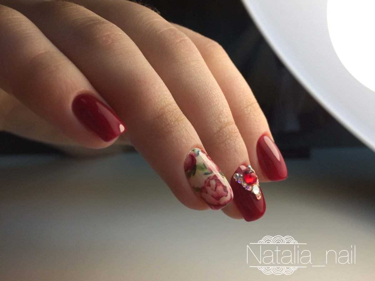 На длинных ногтях более эффектно смотрятся крупные рисунки, тогда как красоту коротких ноготков подчеркнет мелкий цветочный принт.