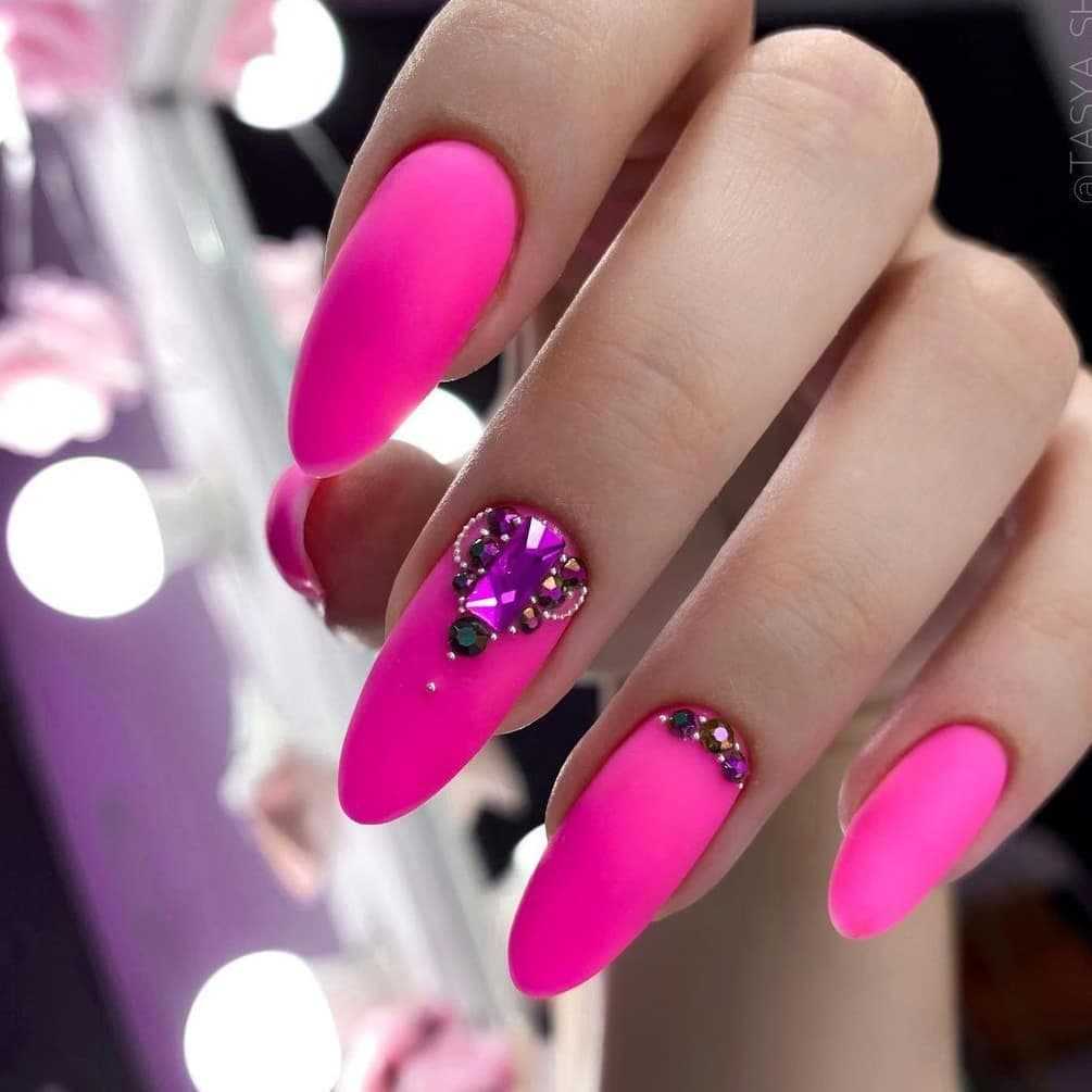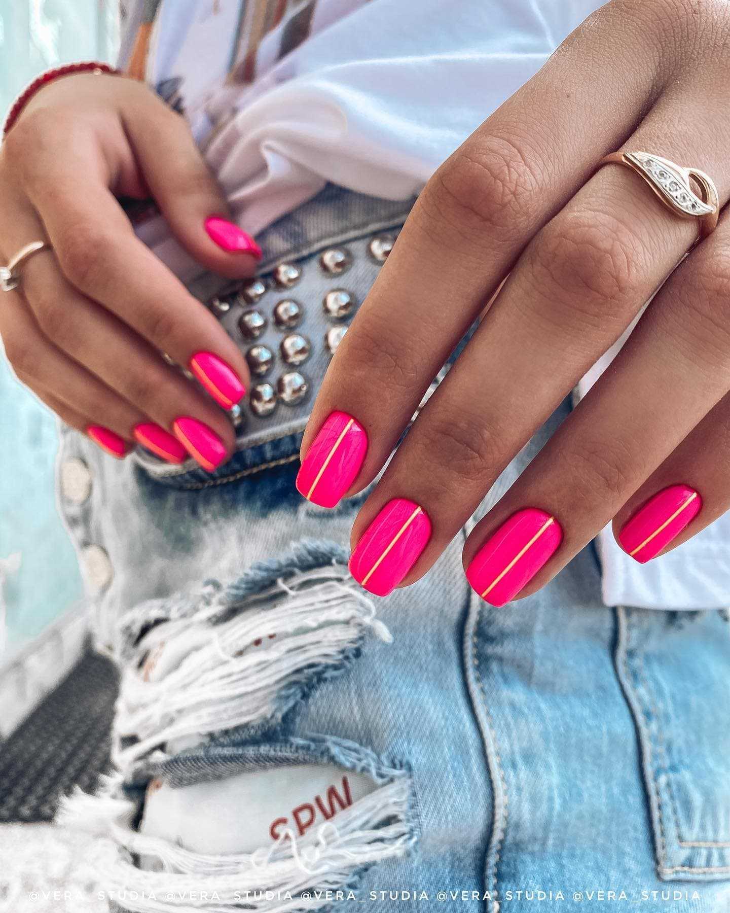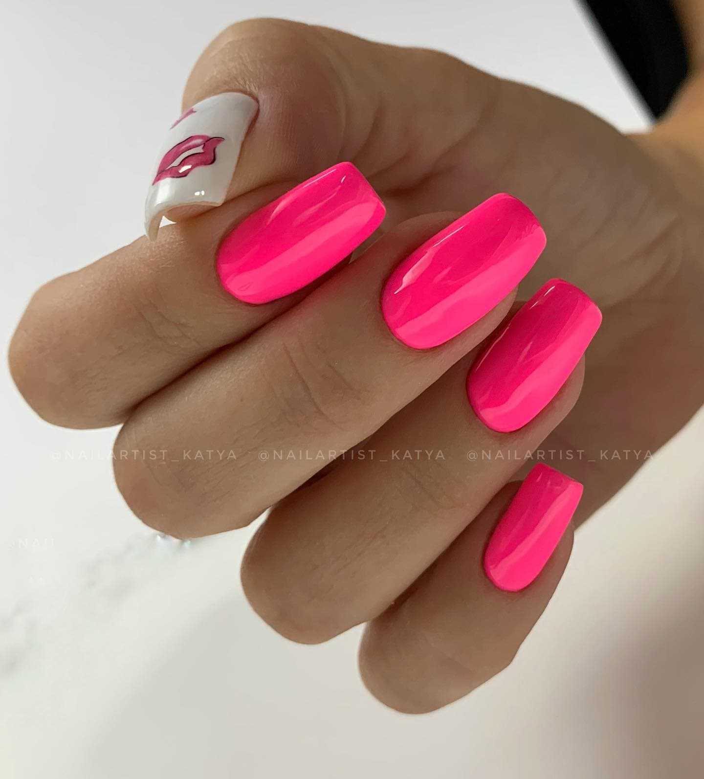 Ярко-розовый маникюр создаст тот самый оригинальный акцент в образе, который не превратит тебя в городскую сумасшедшую (что рискует случиться, если слегка переборщить с креативностью в случае с одеждой или аксессуарами). С ним ты всегда будешь заметна, но ощутишь себя комфортно как на мероприятиях, так и в повседневной жизни. Ниже мы подобрали для тебя десятки идей ярко-розового маникюра гель-лаком с рисунками.