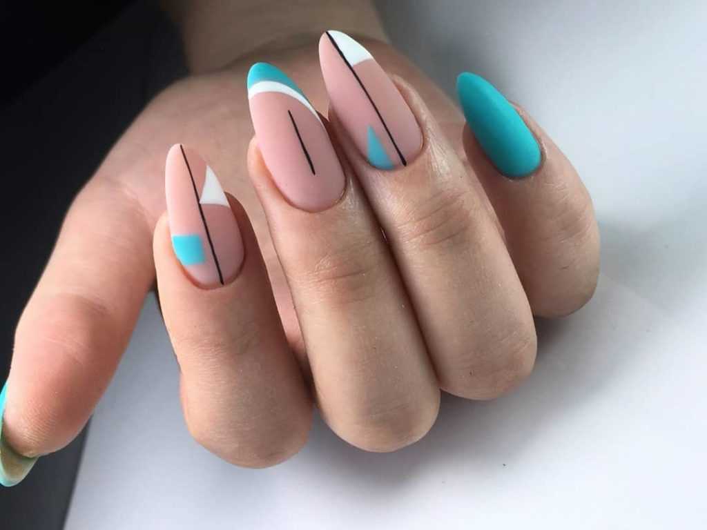 Пастельный маникюр с дизайном из разных фигур или в геометрическом стиле будет гармонично смотреться на наращенных длинных ногтях. На короткие, средней длины, а также закругленные и острые ноготки лучше наносить яркие поперечные линии, а также минималистичную геометрию. Стильный и универсальный нейл-арт с полосками можно создать с помощью актуальных на 2021 год пастельных оттенков – бежевый, пудровый, кремовый, молочный. Дополнительно пастельные цвета рекомендуется попробовать скомбинировать с черным, темно-синим или металлическим цветом.