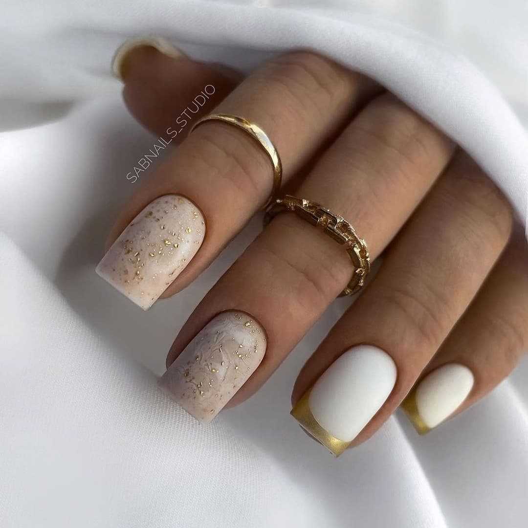 Короткие квадратные ногти — это не значит скучно. Добавьте немного золота или серебра, и квадрат станет украшением ваших рук.