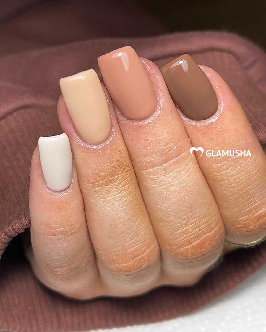 микс различных оттенков. Вовсе не обязательно использовать только один оттенок при покрытии. Вы можете подобрать несколько оттенков и наносить их поочередно или хаотически. При таком нанесении можно использовать до 5 различных оттенков. Отлично сочетаются оттенки розового и коричневого.