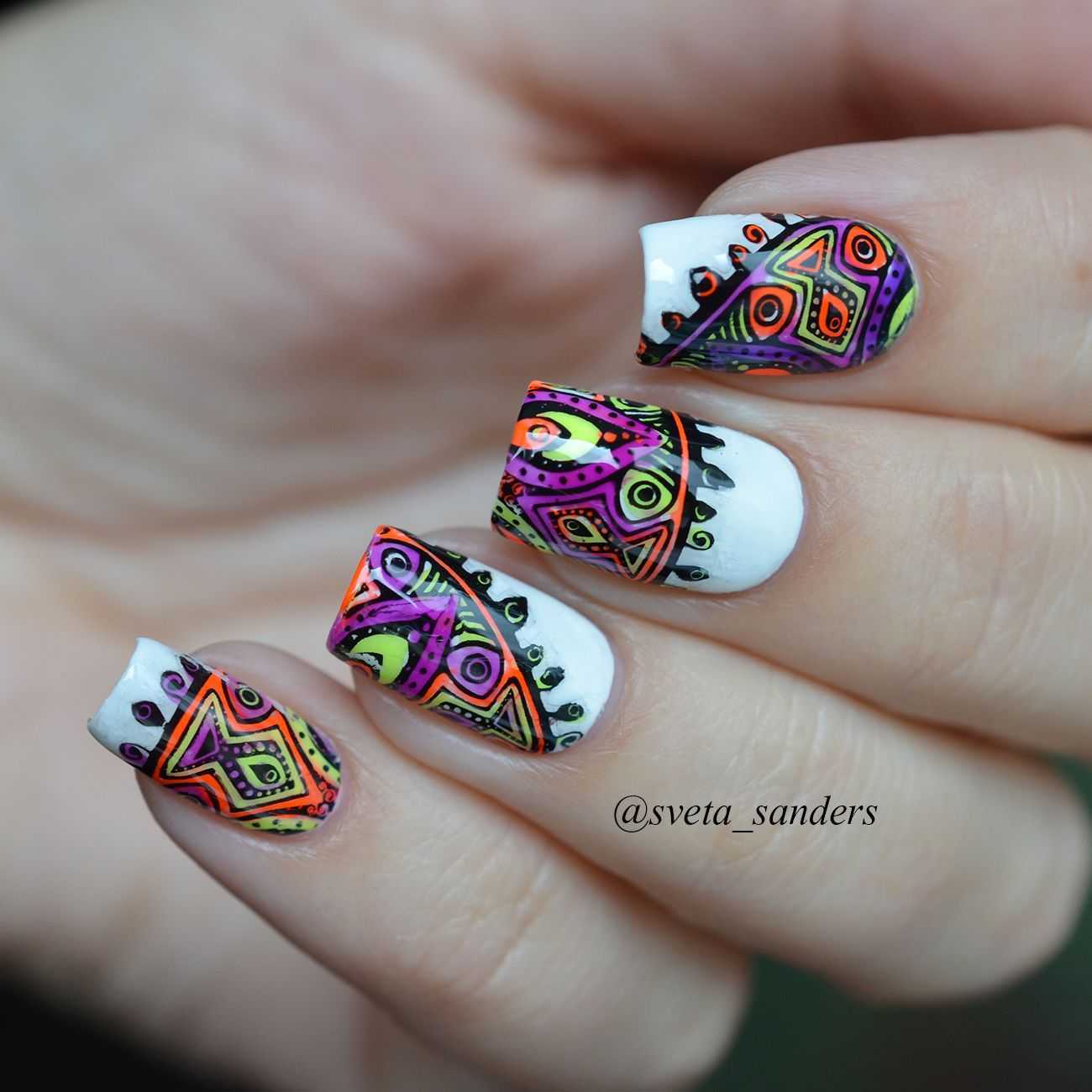 Этнический маникюр — одна из главных модных тенденций уходящего весенне-летнего сезона. «Этнос» в отношении дизайна ногтей подразумевает под собой традиционные рисунки какой-либо национальной культуры. Например, весьма востребован маникюр в индийском стиле. Индия — это особенные угловатые узоры вперемешку с мягкими перьевыми элементами, ловцы снов и яркие цвета, создающие необыкновенно насыщенную и сочную гамму на ваших ногтях. Однако Индия — пусть и одна из главенствующих, но все же не основная этническая тенденция 2021 года. Маникюр в греческом стиле не только вышел на первые позиции среди дизайнов в колоритных национальных традициях, но и вытеснил многие, независимые от этносов, модные тенденции. Можно рассчитывать на то, что девушкам, строго следующим за трендами, но всей душой влюбившимся в Грецию на своих ноготках, не придется отказываться от любимого дизайна. Скорее всего, греческий маникюр задержится на ручках модниц надолго (как минимум, на осенний сезон).