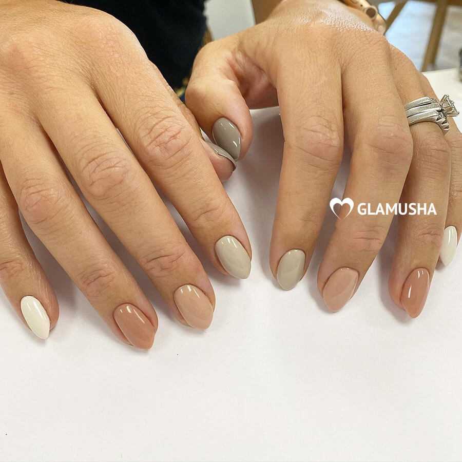 Еще один натуральный вариант покрытия, который делает едва заметный акцент на ваших руках. Оттенок лака чуть-чуть светлее вашего оттенка кожи, но при этом сильного контраста нет.