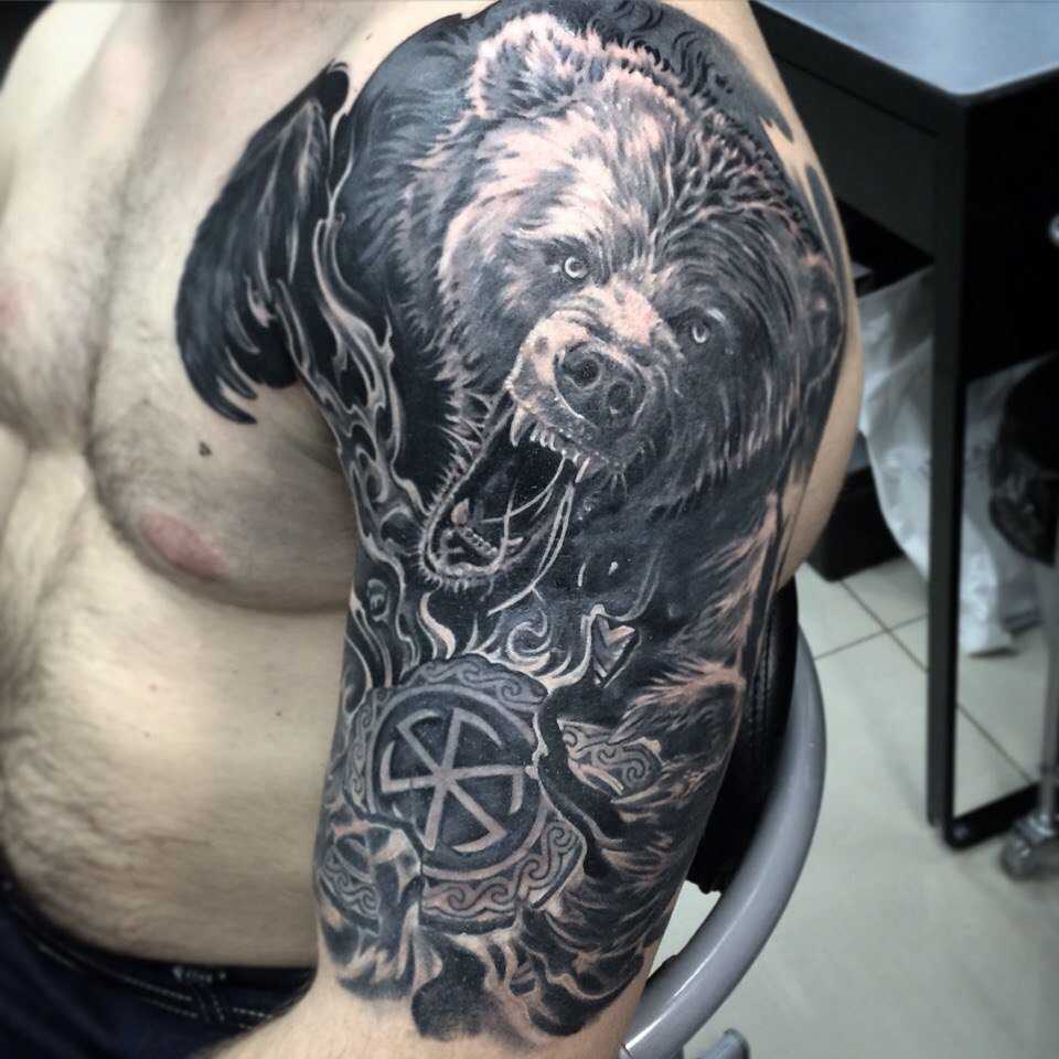 Довольно часто в качестве главного акцента татуировки были животные или птицы. Все они имеют совершенно разные значения, о которых стоит знать до процесса нанесения. К примеру, медведь является хозяином леса и воплощением бога Велеса. Поэтому символ в виде татуировки всегда означает власть, силу, а также здоровье и плодородие.