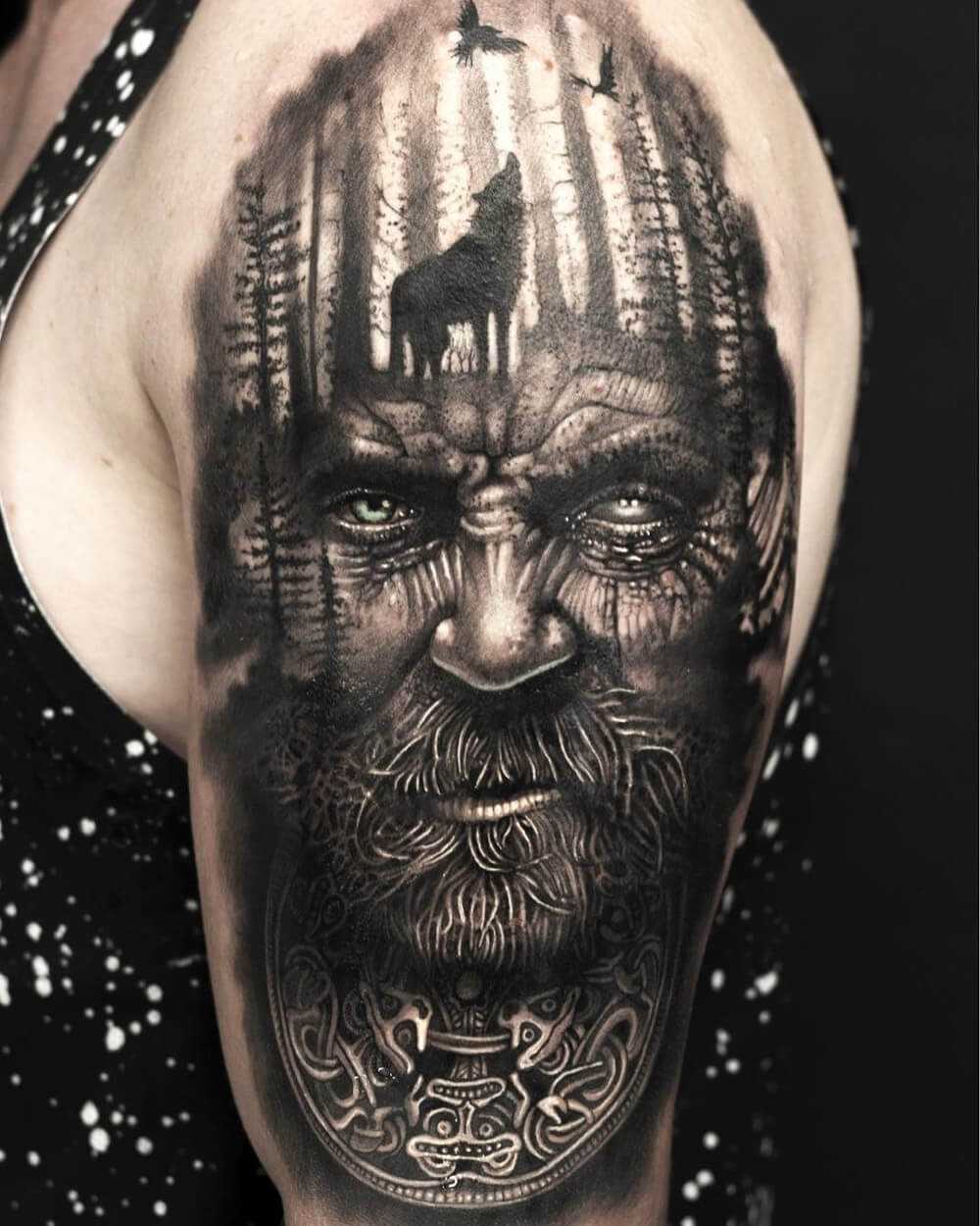 Тату имеет глубокий, но противоречивый смысл. Хищник – враг человека, но также он обладает поразительным умом, дисциплиной и преданностью стае. Изображение выбирают мужчины, сильные духом, способные отстаивать свою позицию, защищать родных. Это символ бесстрашия, твердости в намерениях и моральной устойчивости. Татуировку с волком предпочитают гордые, уверенные в себе люди. По легенде, Чингисхан был рожден от волчицы, а основателей Рима – Ромула и Рима – воспитала волчица. Они были сыновьями бога войны Марса, поэтому изображение волка иногда может означать кровожадность и жестокость.