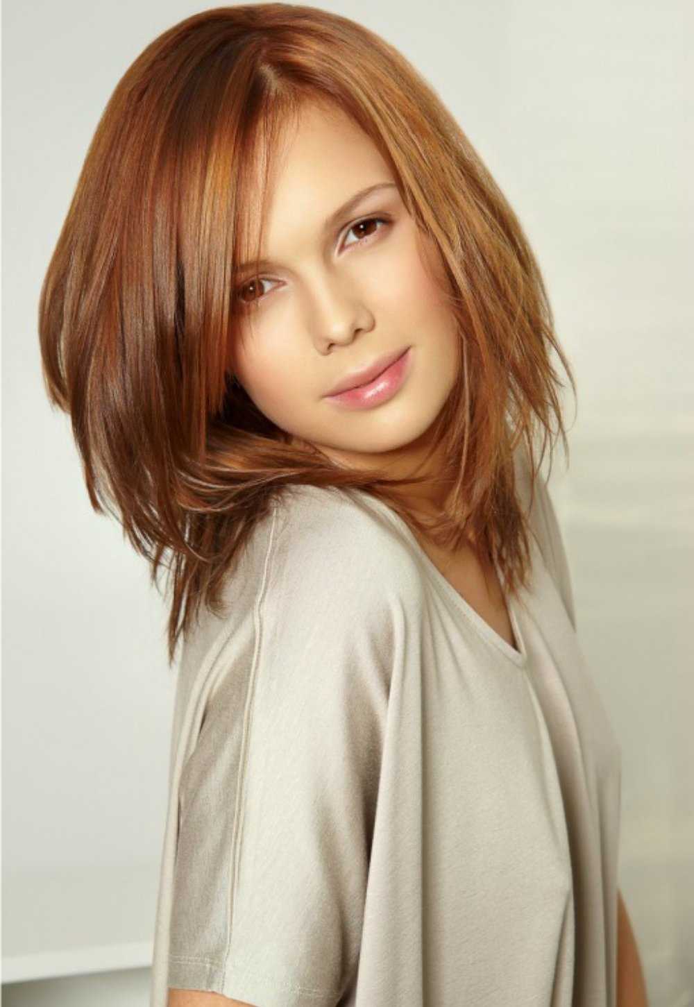Каскадные прически средней длины – лучший вариант для девушек с круглой формой лица. Благодаря удлиненным прядям форма лица приближается к овалу. Обязательно используйте косой пробор, пышную макушку. Стрижка делается на уровне плеч или ниже подбородка.