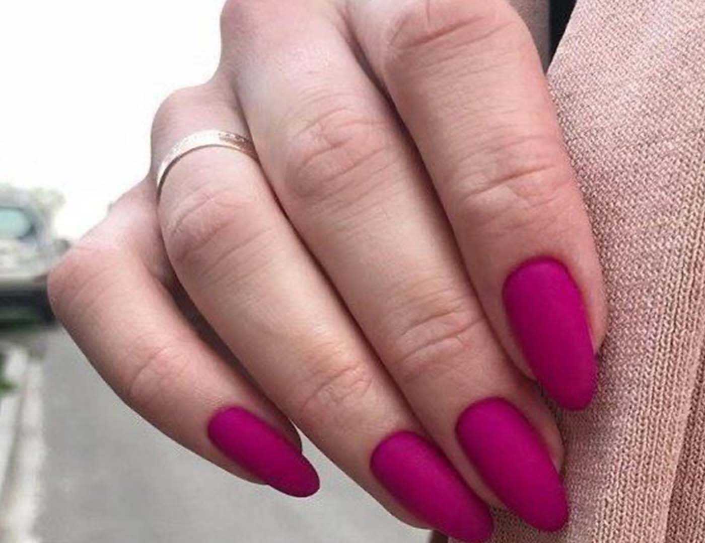 Матовое покрытие может подчеркнуть даже самый незначительный изъян. Поэтому, надо сделать форму закруглённой, ближе к «овалу» или «миндалю». Обязательно ногти надо отшлифовать.