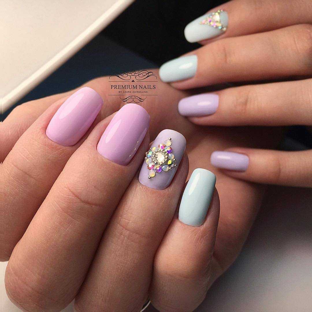 Если есть желание разбавить спокойную пастель дизайном, не стоит злоупотреблять яркими красками и камнями. Лучше придерживаться нейтрального исполнения маникюра, сочетать как можно меньше цветов, или остановиться на выборе одного оттенка.