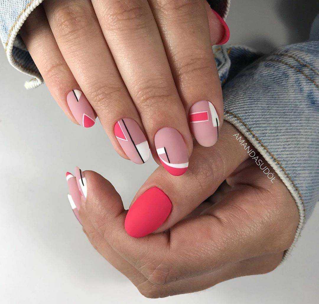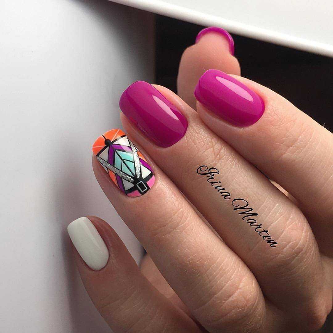 - геометрические узоры. Абстрактные геометрические узоры стали популярным выбором для молодежного маникюра. Это могут быть разноцветные линии, треугольники, ромбы и другие геометрические элементы, создающие современный и стильный вид;