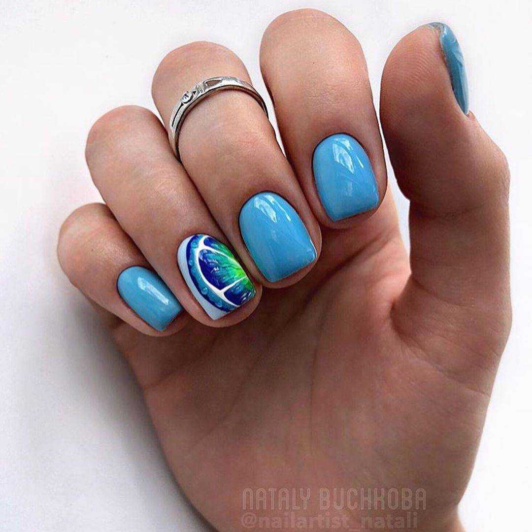 Только летом небо бывает таким высоким и голубым. Отразите это в маникюре. Яркие оттенки голубого отлично смотрятся на любой длине и форме ногтей