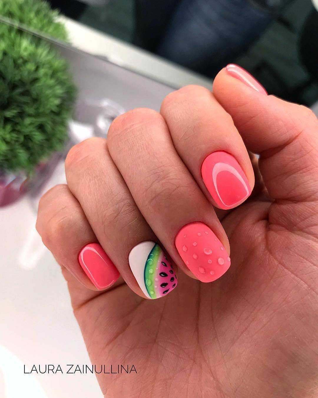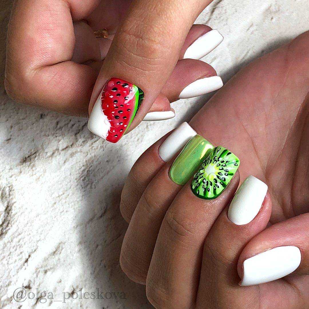 Летний маникюр подразумевает отражение на ноготках неких символов этого времени года. С чем ассоциируется лето? Конечно, с вкусняшками. Мороженое во всех видах и оттенках, сочные фрукты и ягоды.