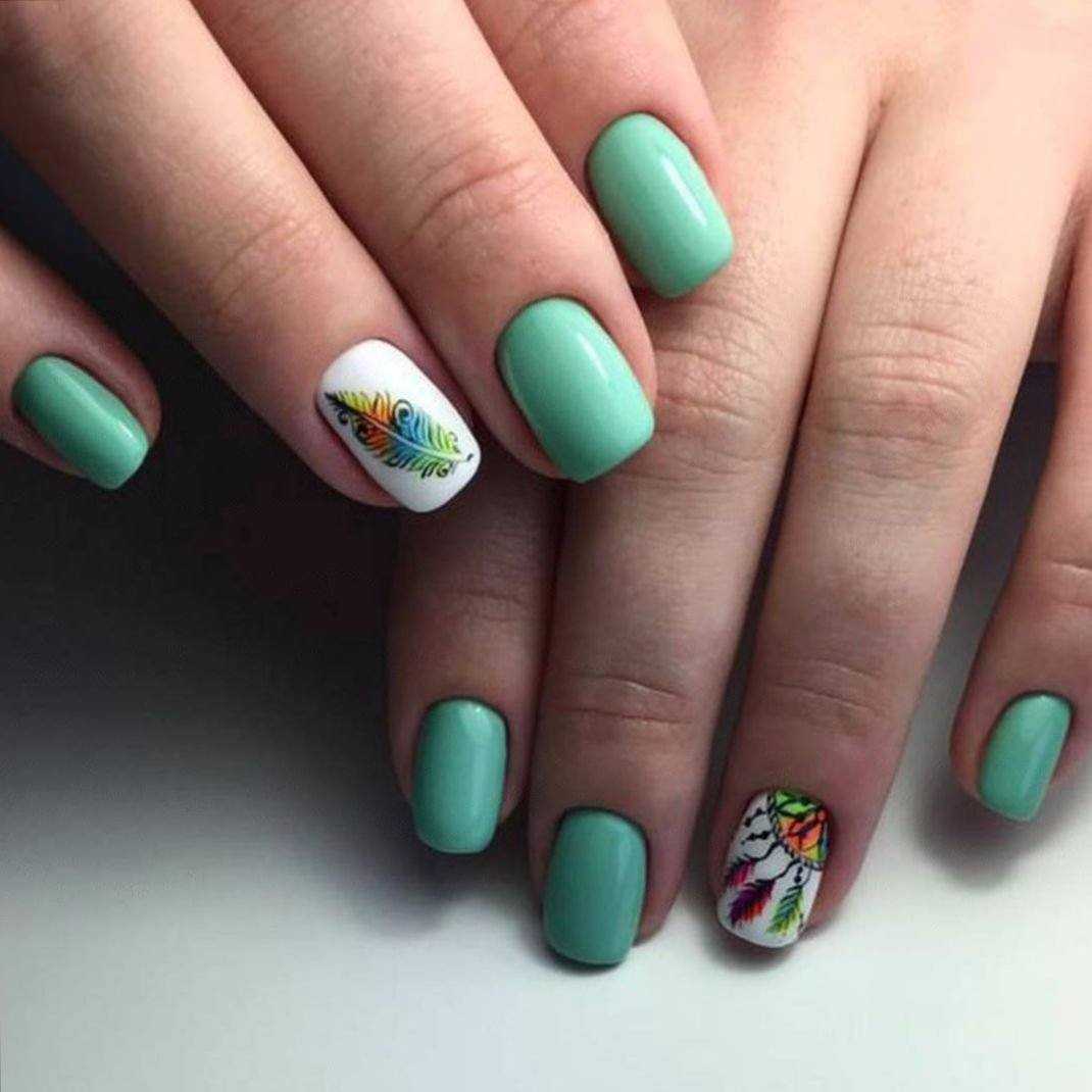 Конечно, зеленый оттенок можно использовать с июльском маникюре повсеместно, но мы рекомендуем обратить внимание на этот оттенок. Он не просто украсит ноготки, но и немного «охладит» в жаркие дни