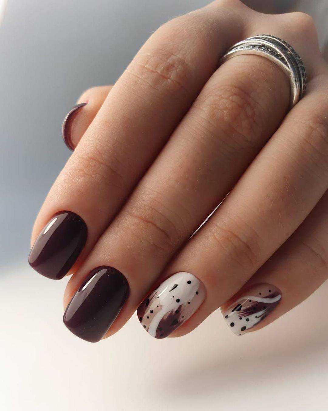 Маникюр на короткие ногти в темных цветах