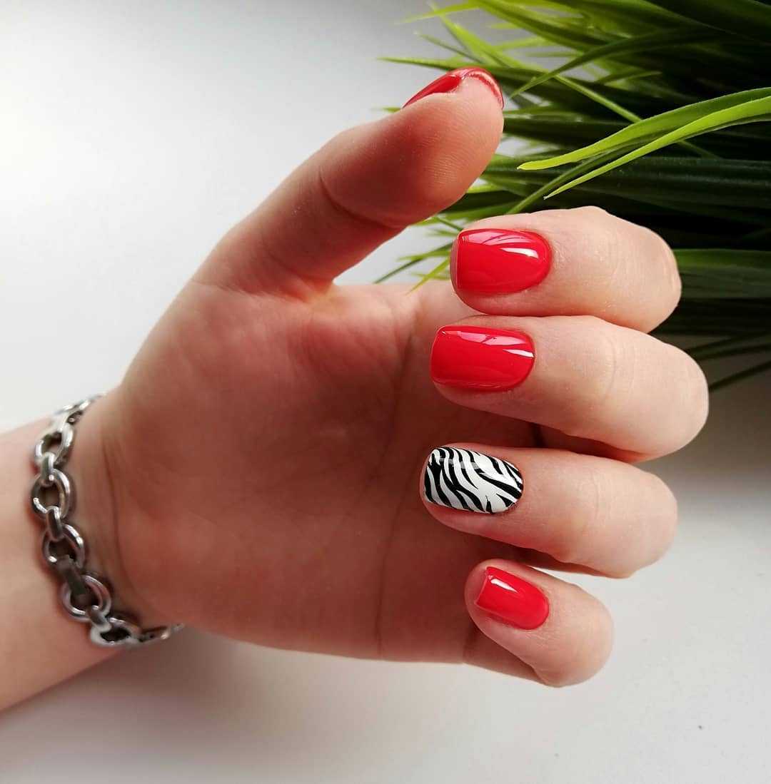 Немного страсти не повредит и летом. Только не делайте однотонный маникюр. Используйте сочный оттенок для ярких акцентов.