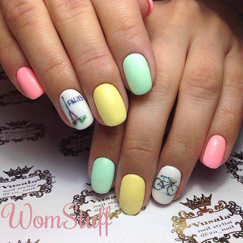 Такой молодёжный маникюр не стоит делать в 15 лет. Он больше подойдёт для более зрелых девушек и молодых женщин. Этот дизайн ногтей лучше делать гелем лаком. Он более густой и даёт хороший рельеф. Для выполнения вам понадобятся лаки гели пастельных оттенков, лампа для сушки, праймер, песок для маникюра, тонкая кисть.