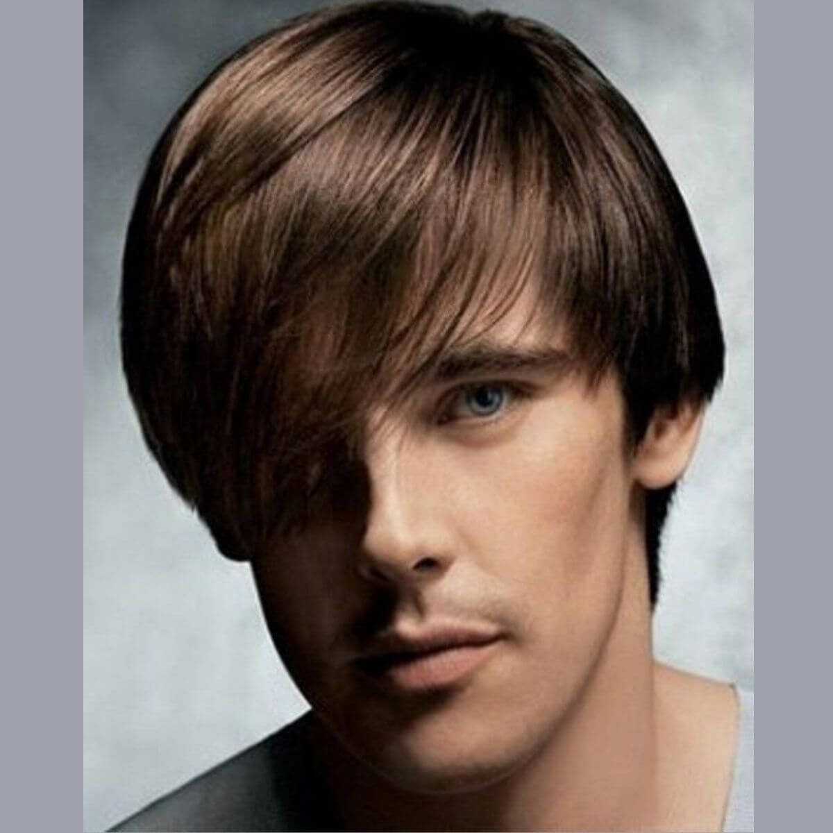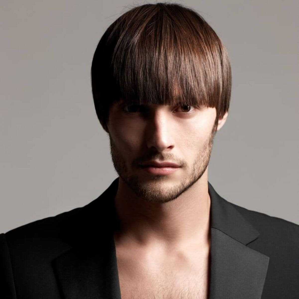 - Прямая челка, сочетающаяся со стрижками «под горшок» или «шапочка» совершенно не подойдет круглолицым парням. Горизонтальная линия прядей визуально сделает лицо еще более широким, а этого следует избегать.