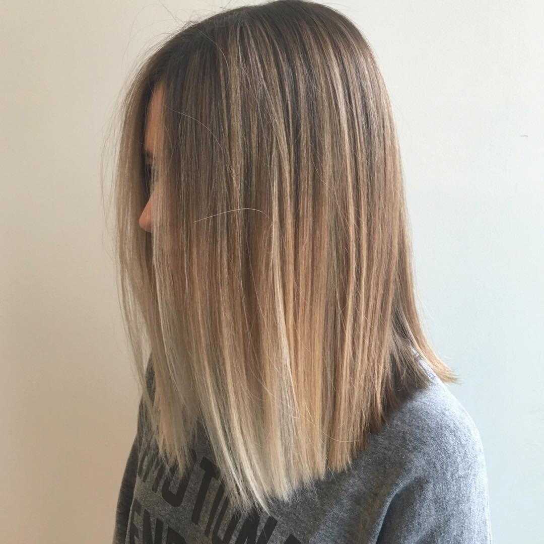 - Самая популярная окраска на средние волосы – техника балаяж. Окрашивание волос происходит путем хаотичного высветления прядей. Корни волос не затрагиваются и остаются в прежнем цвете. Благодаря хаотичности волосы выглядят выгоревшими. Важным преимуществом метода балаяж является придание объема за счет неравномерного цветового покрытия. Балаяж отлично подходит обладательницам многослойной стрижки в виде лесенки или каскада.