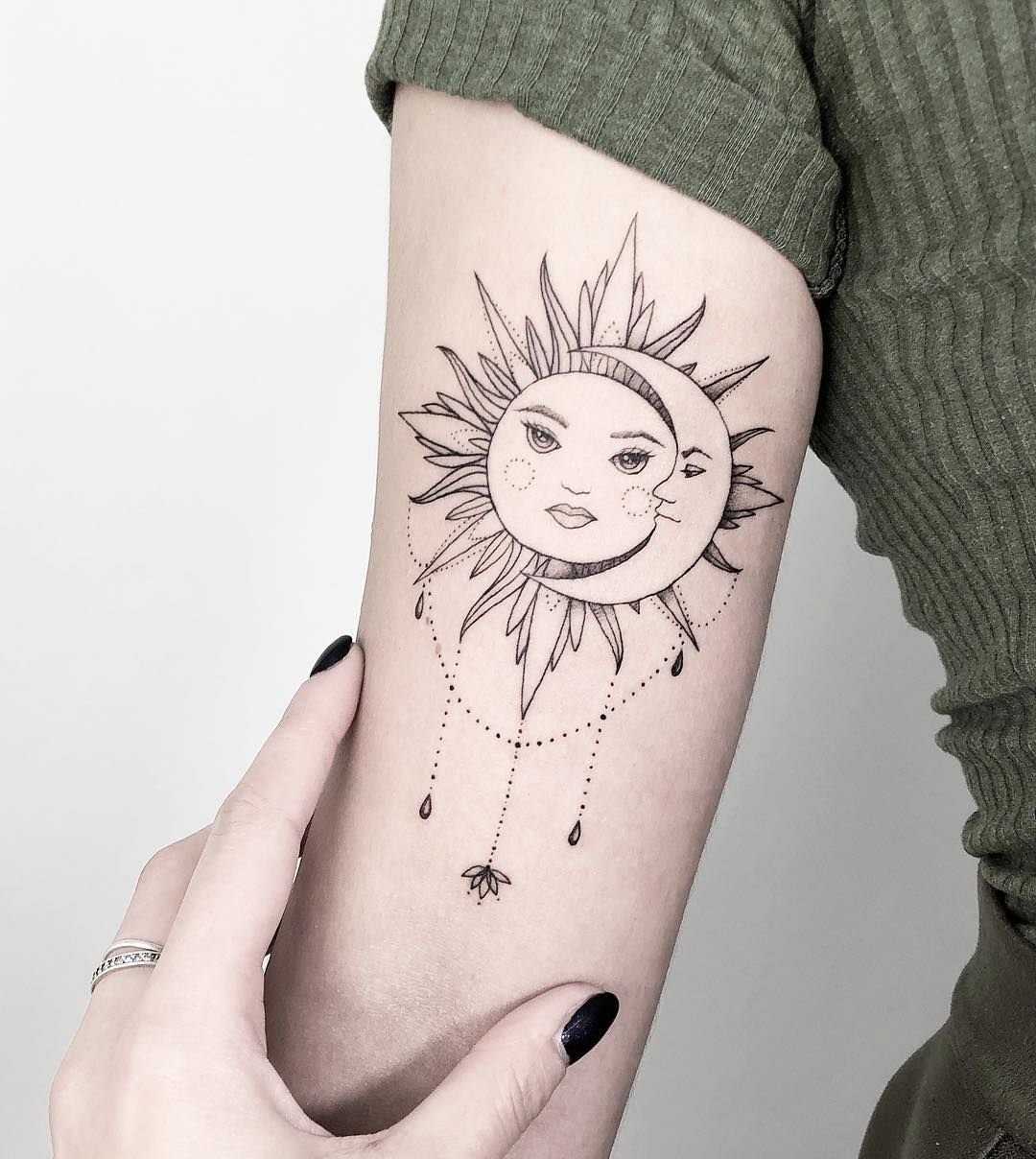 Было бы трудно говорить о солнце, не упомянув луну. Объединение их в татуировку дает результат, аналогичный Инь и Янь. Вместе эти два небесных тела символизируют идеальный баланс между силами света и тьмы. Таким образом, татуировка солнца и луны представляет собой две силы, которые царят и сосуществуют в каждом человеке.