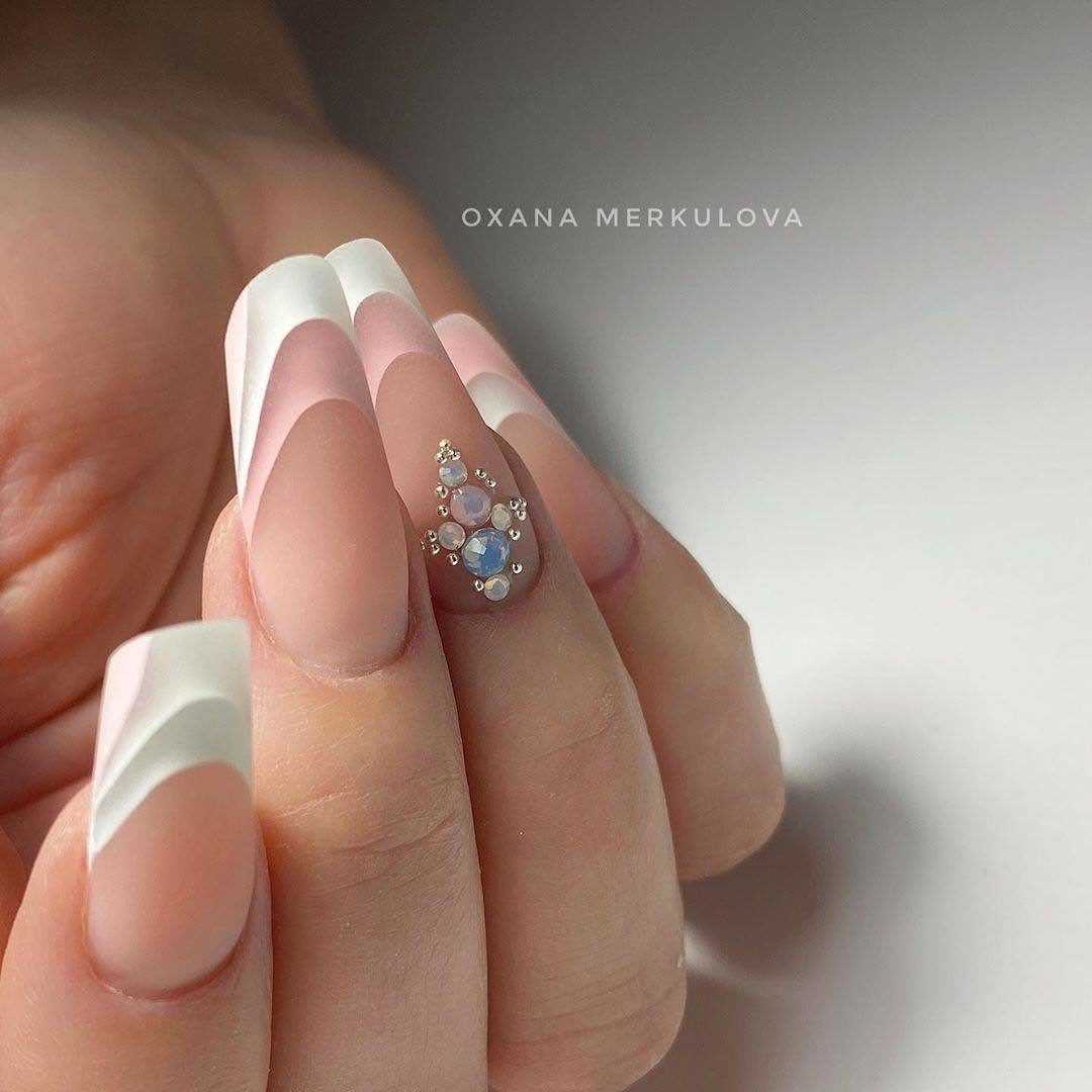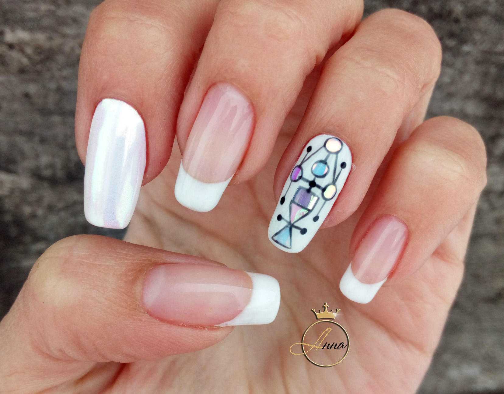 Французский маникюр сам по себе выглядит очень красиво. И в большинстве случаев он не требует дополнительных деталей. Тем не менее, не стоит отрицать популярность разнообразия актуальных видов дизайна, которые всегда дополняют маникюр и делают его более стильным, оригинальным.