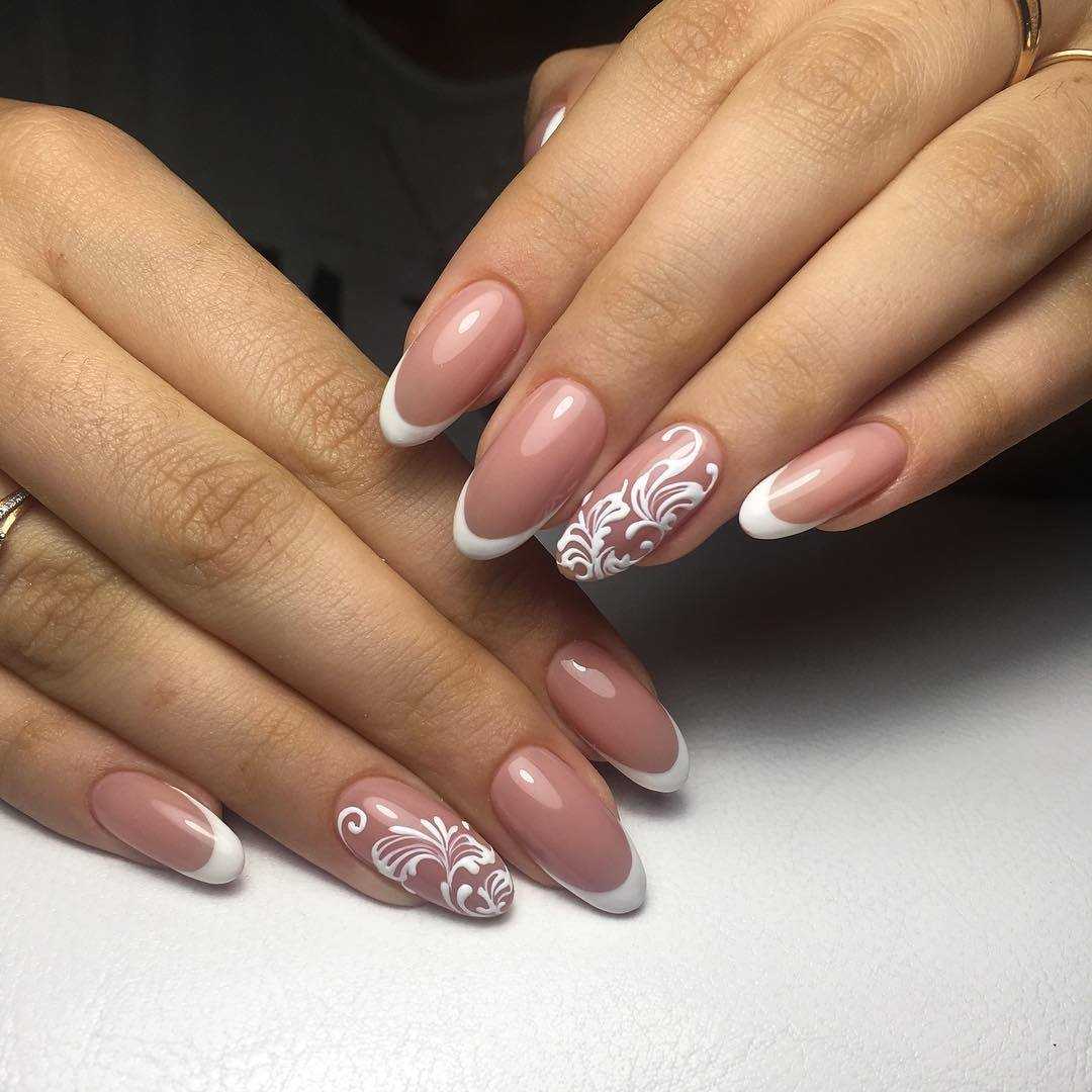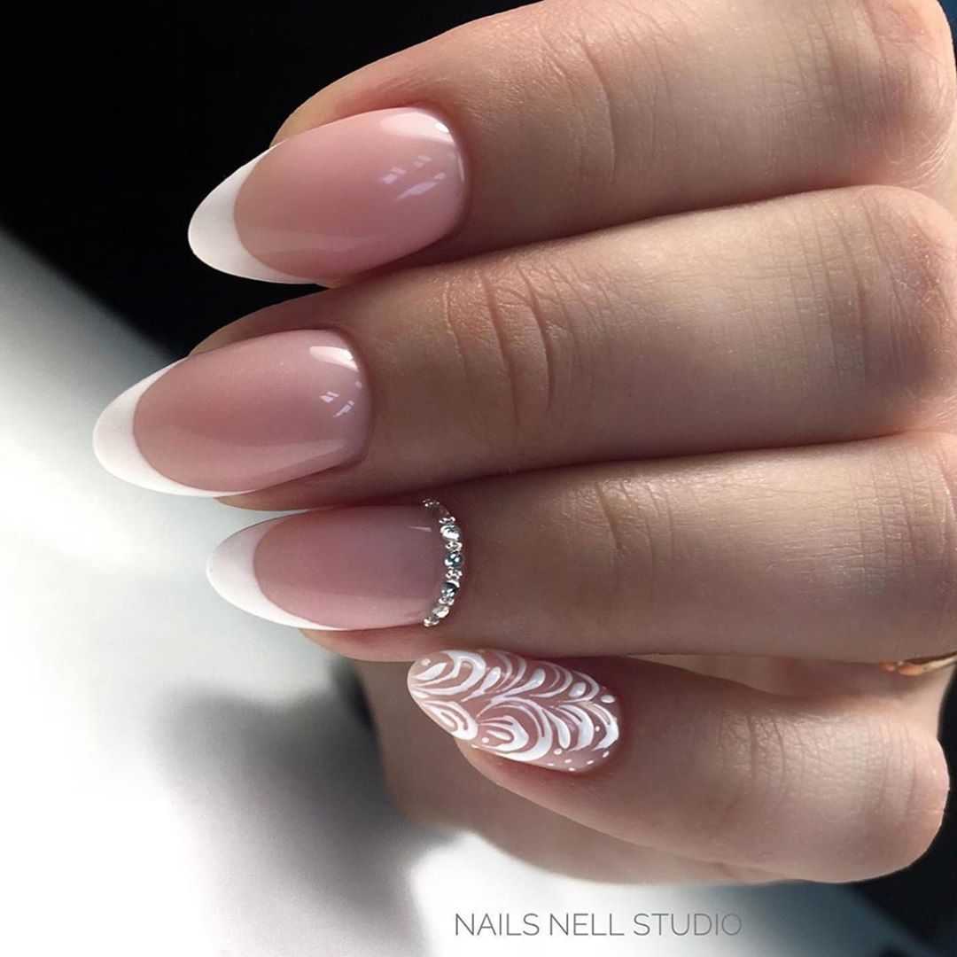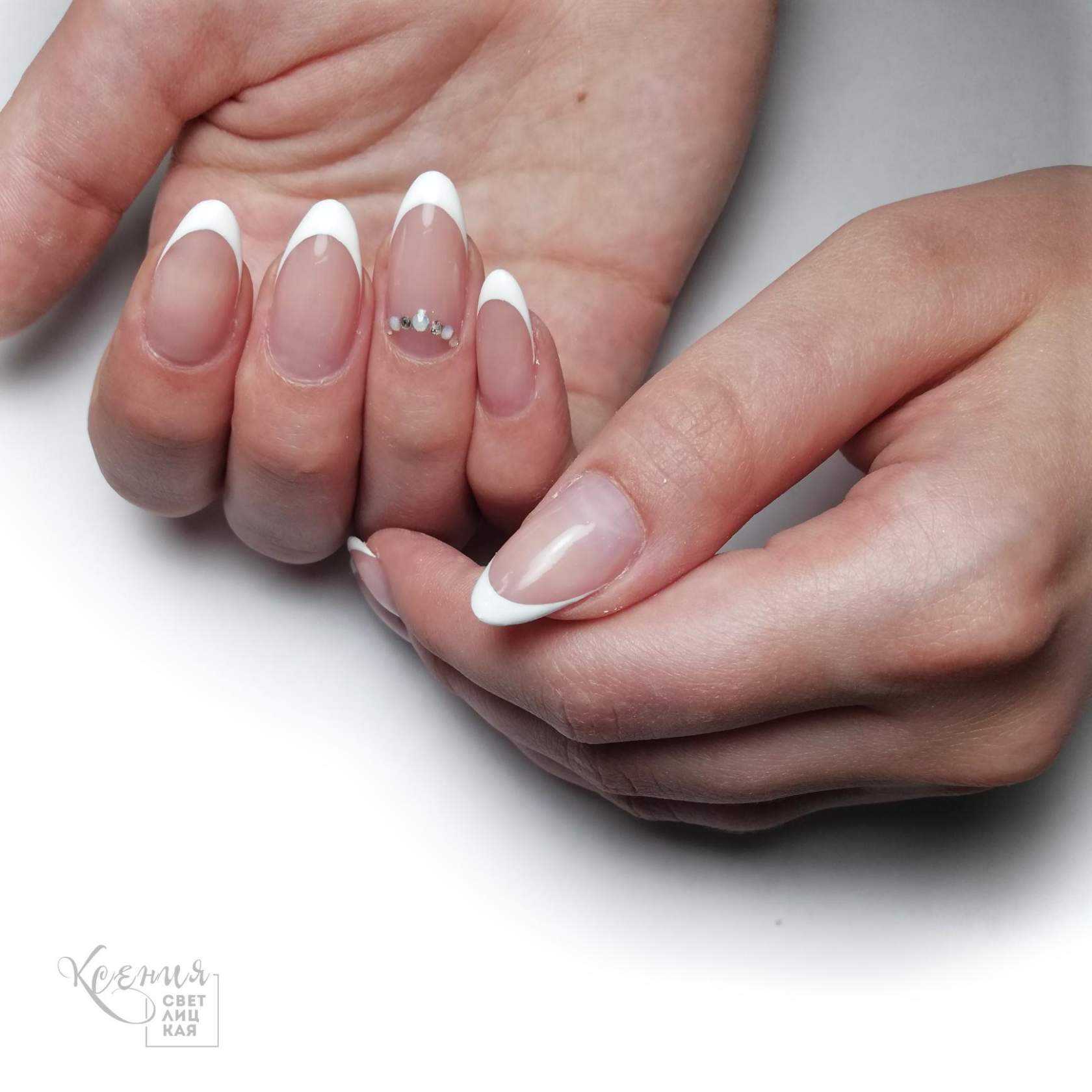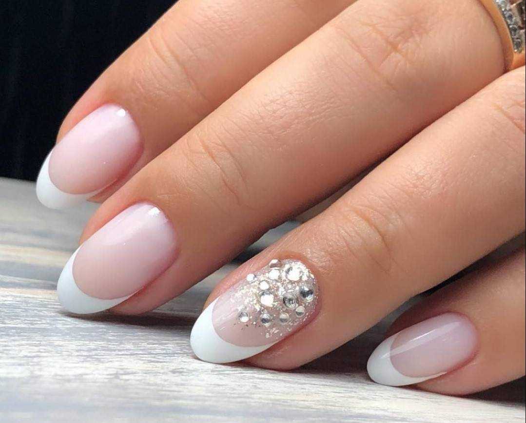 В большинстве случаев французский маникюр выполняется в нежном белом цвете. Именно этот цвет способен придать образу девушки невинности и романтичности. Френч белого цвета считается универсальным вариантом, ведь он прекрасно подходит как для офисных видов одежды, так и для повседневных нарядов. Овальный френч пришел в моду сравнительно недавно. Поэтому мастера нейл-арта зачастую используют именно данную форму френча. Существуют большое количество прекрасных и утонченных идей, которые отлично соединяются с дополнительными элементами декора, например, цветами, стразами, бульонками, конфетти и другими.