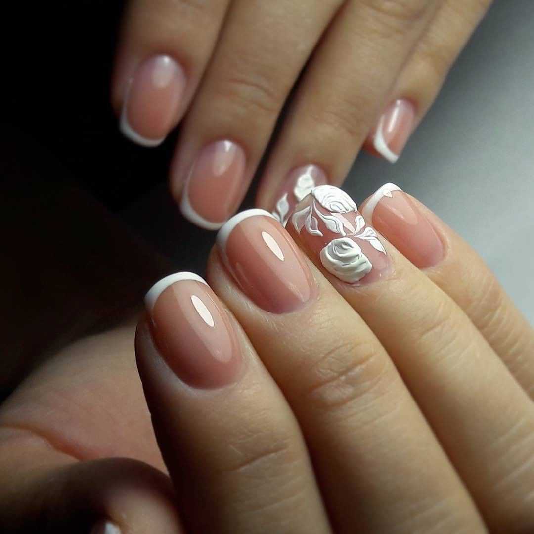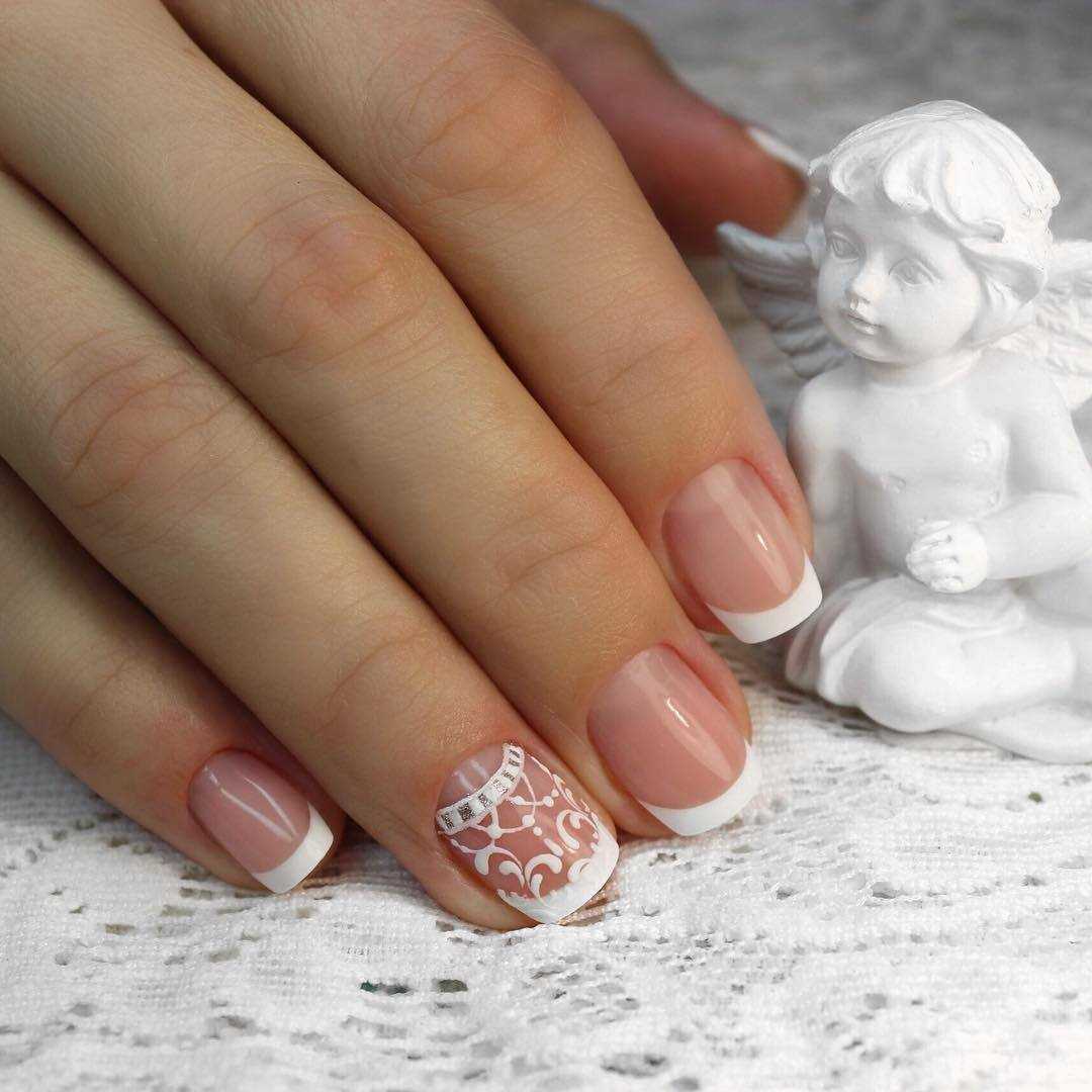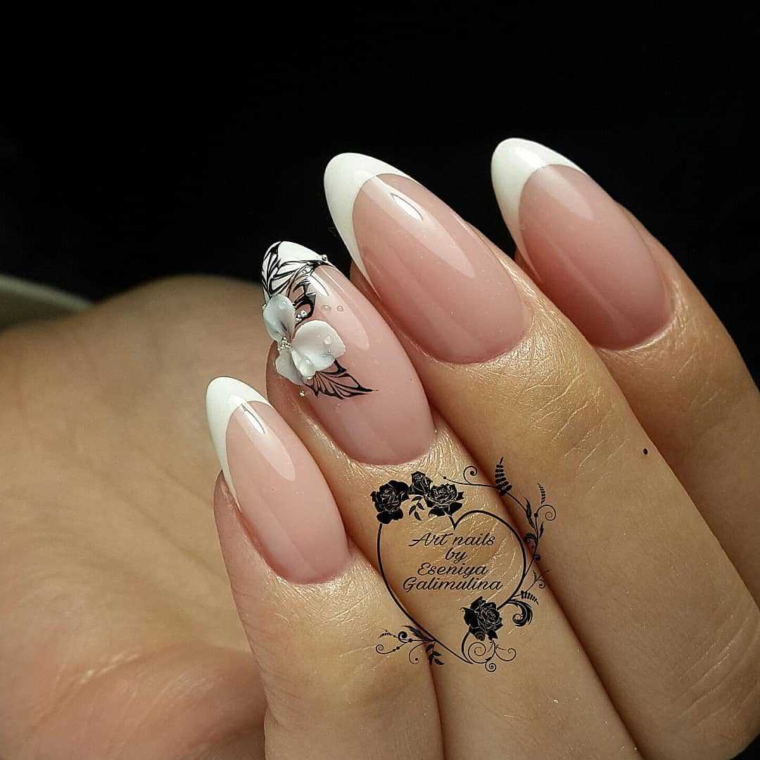 В большинстве случаев французский маникюр выполняется в нежном белом цвете. Именно этот цвет способен придать образу девушки невинности и романтичности. Френч белого цвета считается универсальным вариантом, ведь он прекрасно подходит как для офисных видов одежды, так и для повседневных нарядов. Овальный френч пришел в моду сравнительно недавно. Поэтому мастера нейл-арта зачастую используют именно данную форму френча. Существуют большое количество прекрасных и утонченных идей, которые отлично соединяются с дополнительными элементами декора, например, цветами, стразами, бульонками, конфетти и другими.