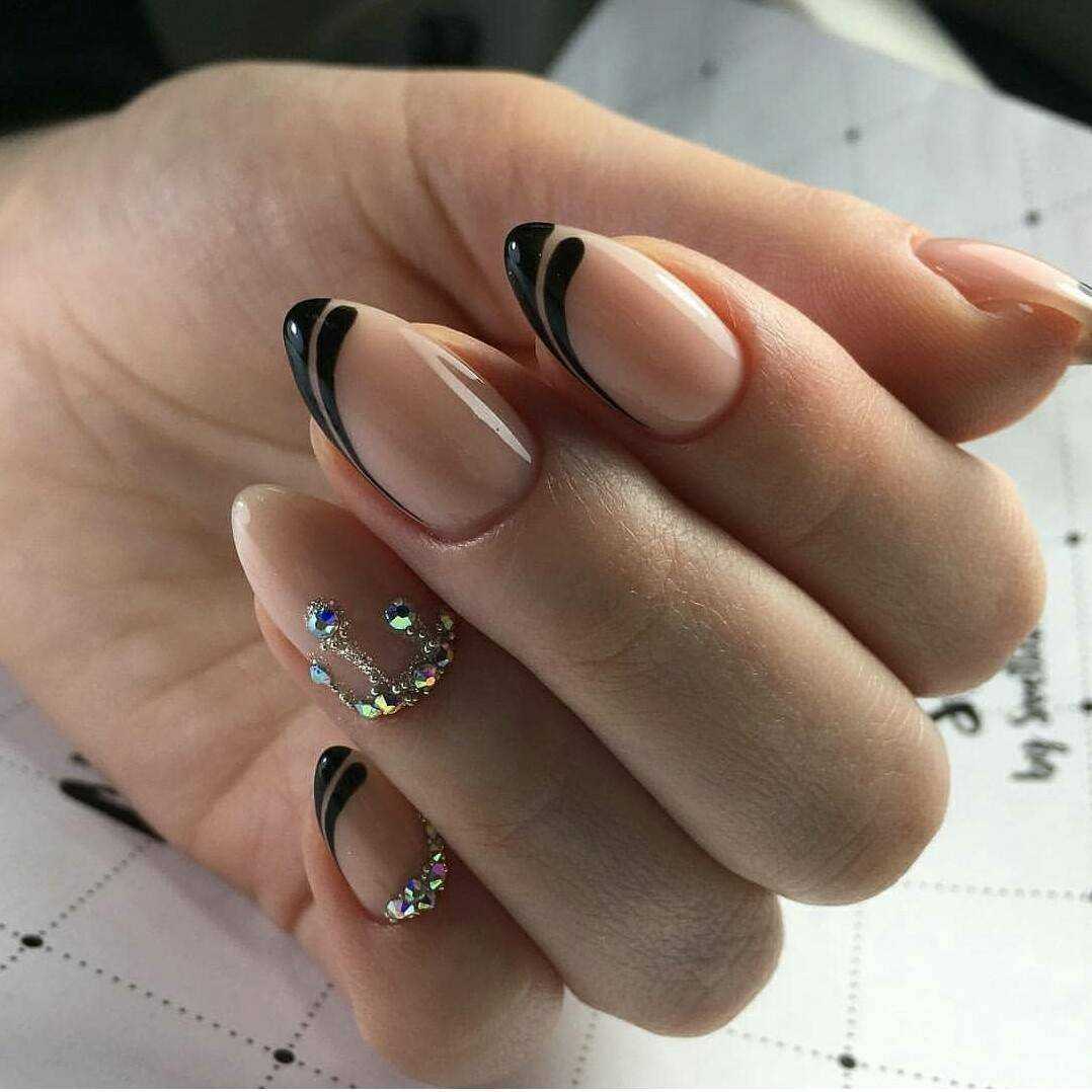 Чёрный френч также в моде. Он всегда выглядит несколько загадочно. Он более демократичен, чем красный, его прекрасно можно сочетать с любыми цветами, наносить рисунки, украшать ногти стразами.