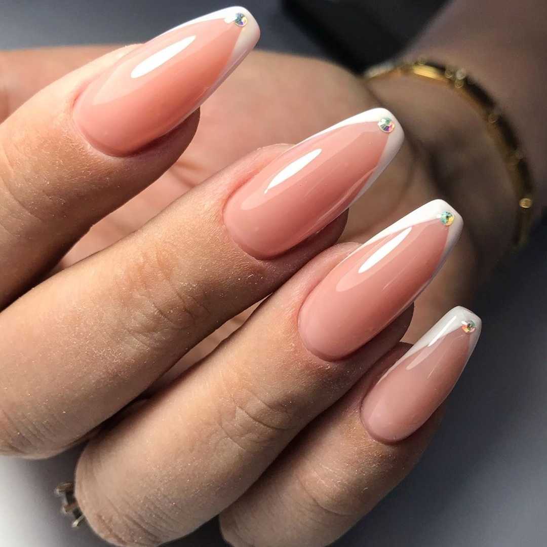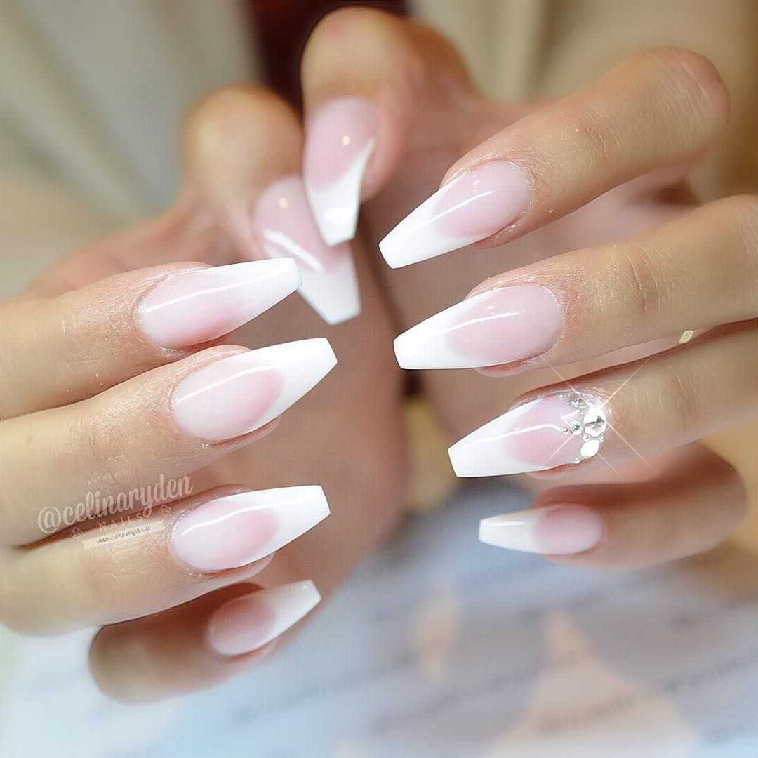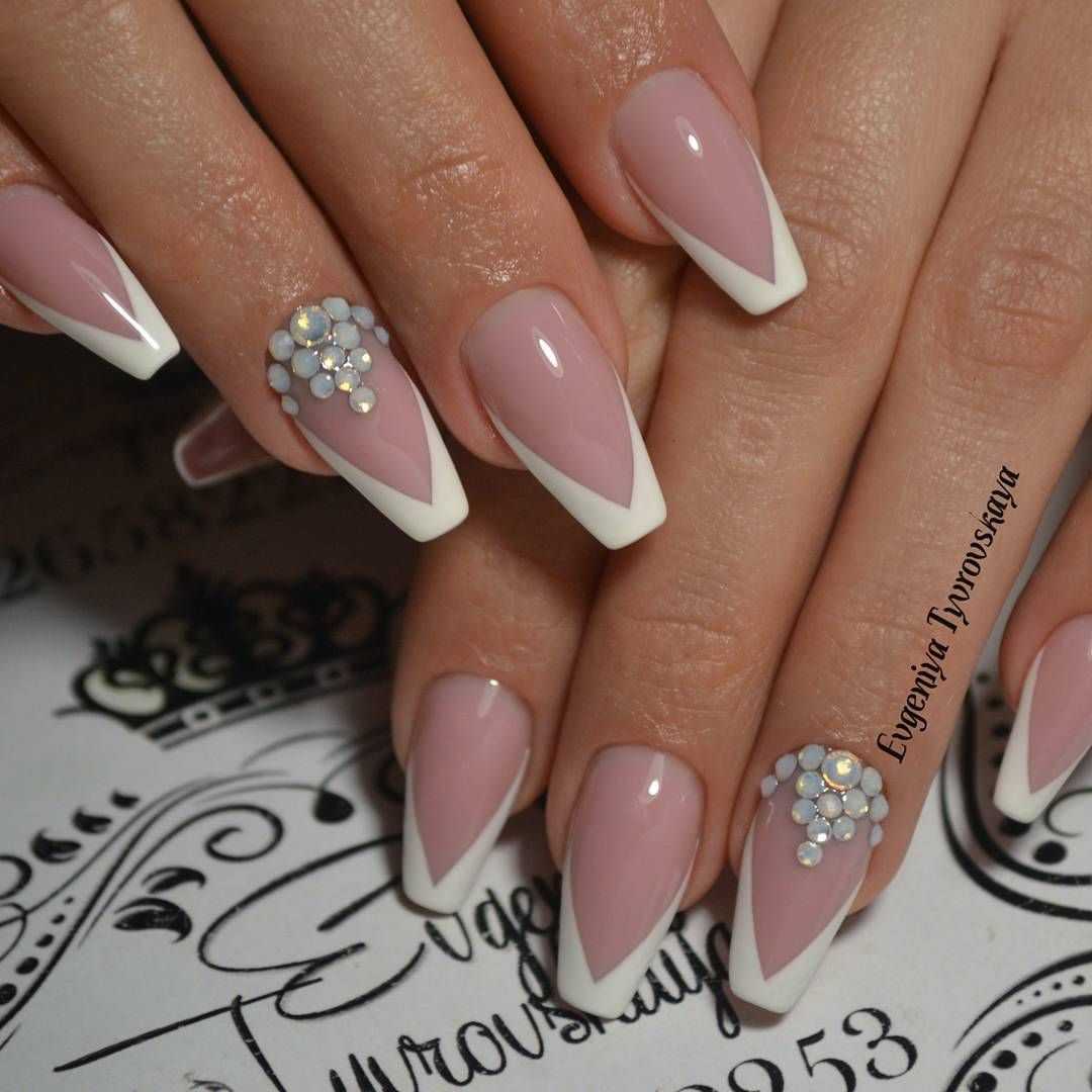 Форма «балерина» уже на протяжении нескольких лет сохраняет актуальность. В сочетании с френчем даже на коротких ногтях она будет выглядеть стильно