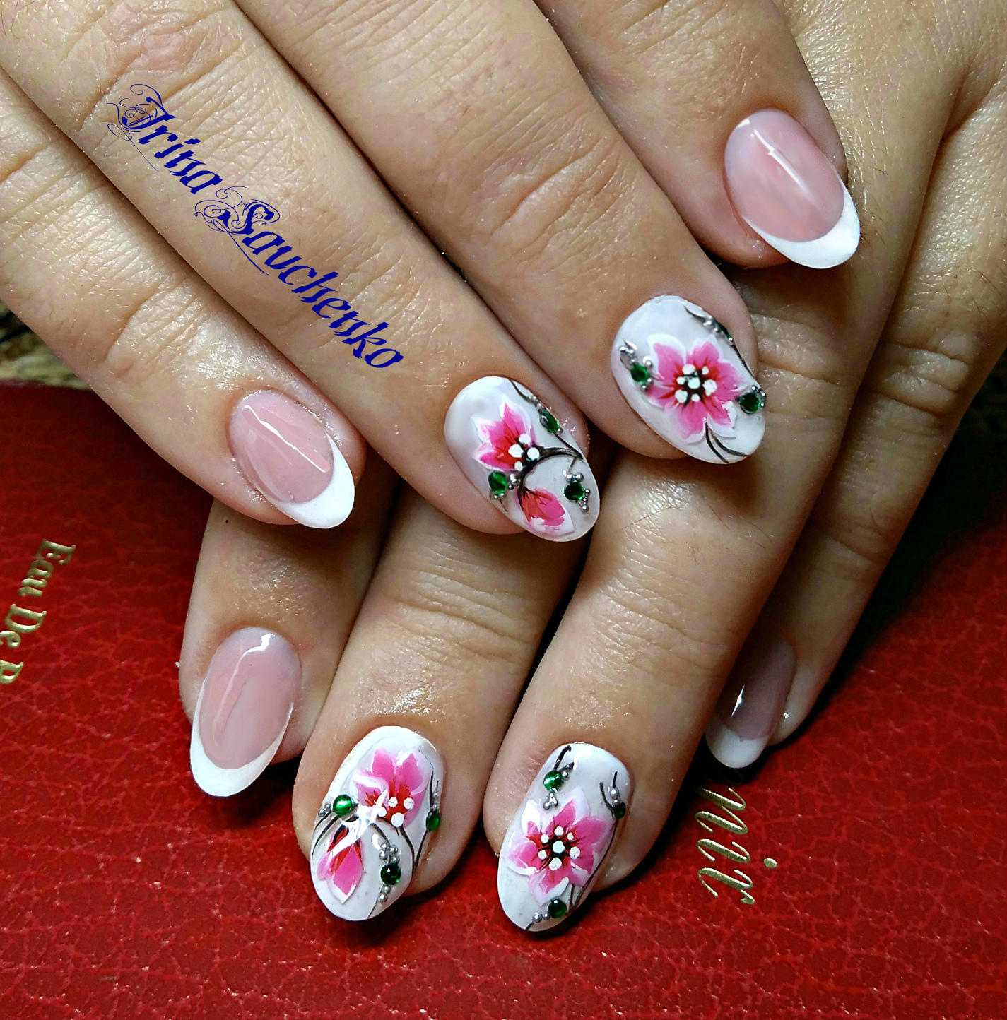- Дополнение френча рисунками, причём, не только на коротких, но и на длинных ногтях тоже остается в моде. Главное, они не должны перегружать, поэтому подбираются в каждом конкретном случае. Дизайн может быть геометрическим или цветочным, или любым другим, но должен выполнять своё предназначение, украшать.
