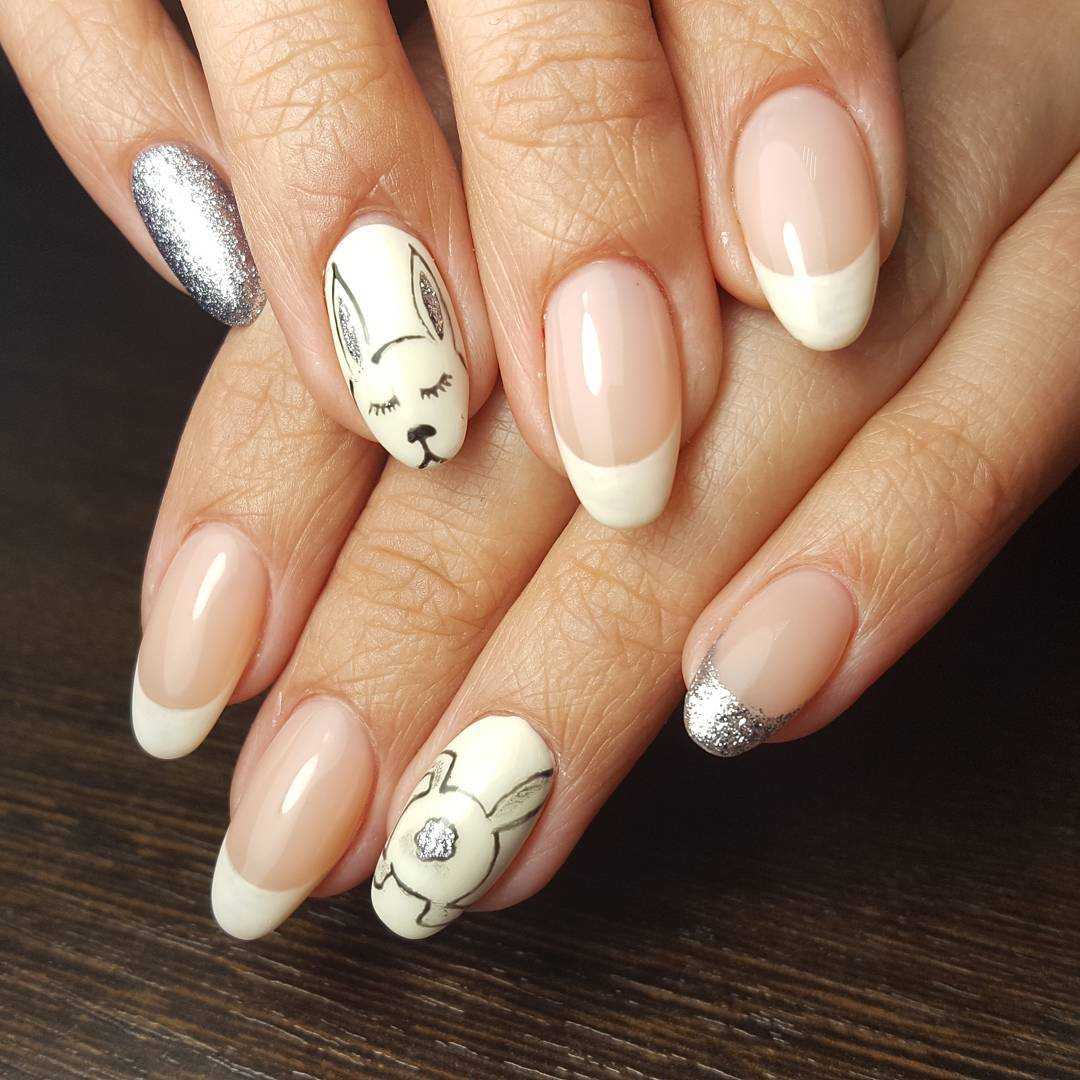 - часть дизайна — френч наносится на 1-2 ногтя руки;