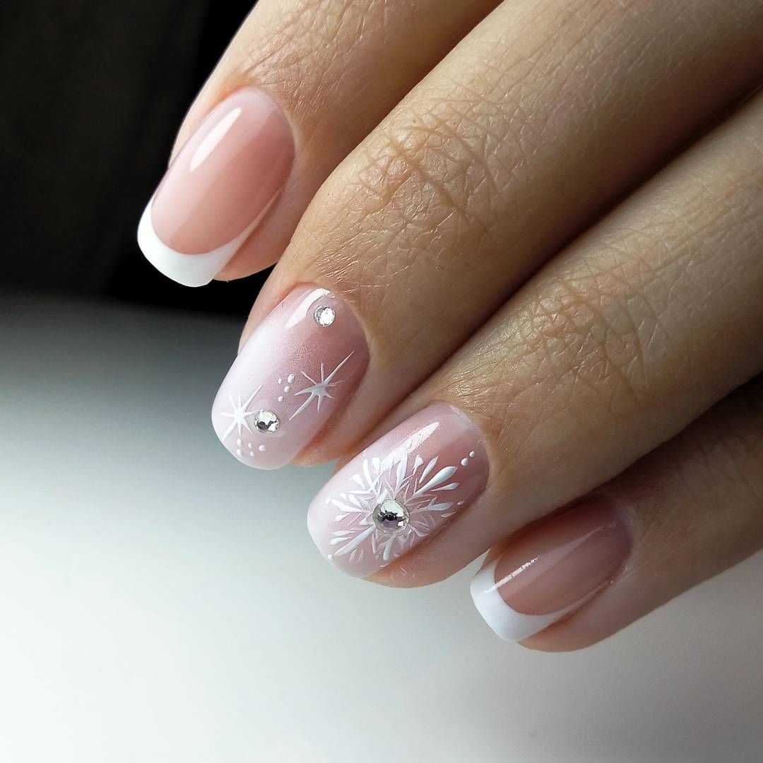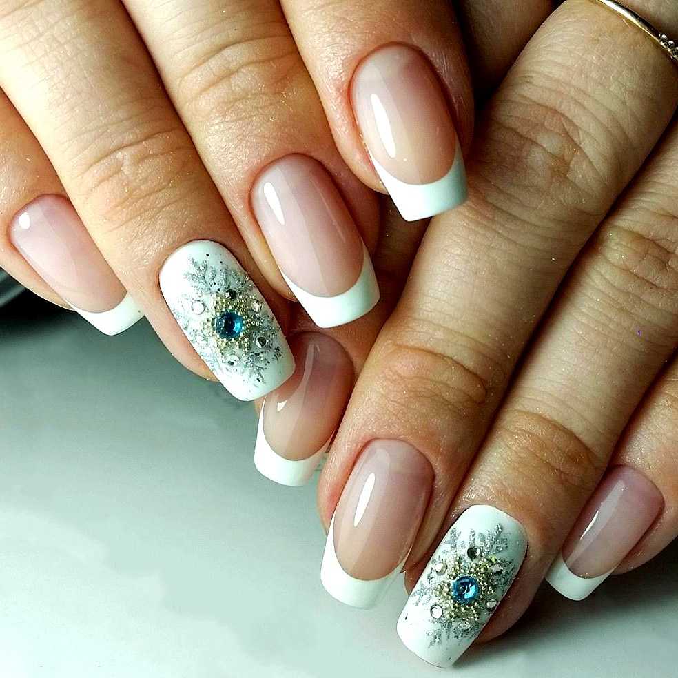 Зимой французов можно украсить снежинками, елочными игрушками и даже праздничными персонажами. А любителям более классических вариантов можно украсить французский маникюр насыщенными пайетками и камнями.